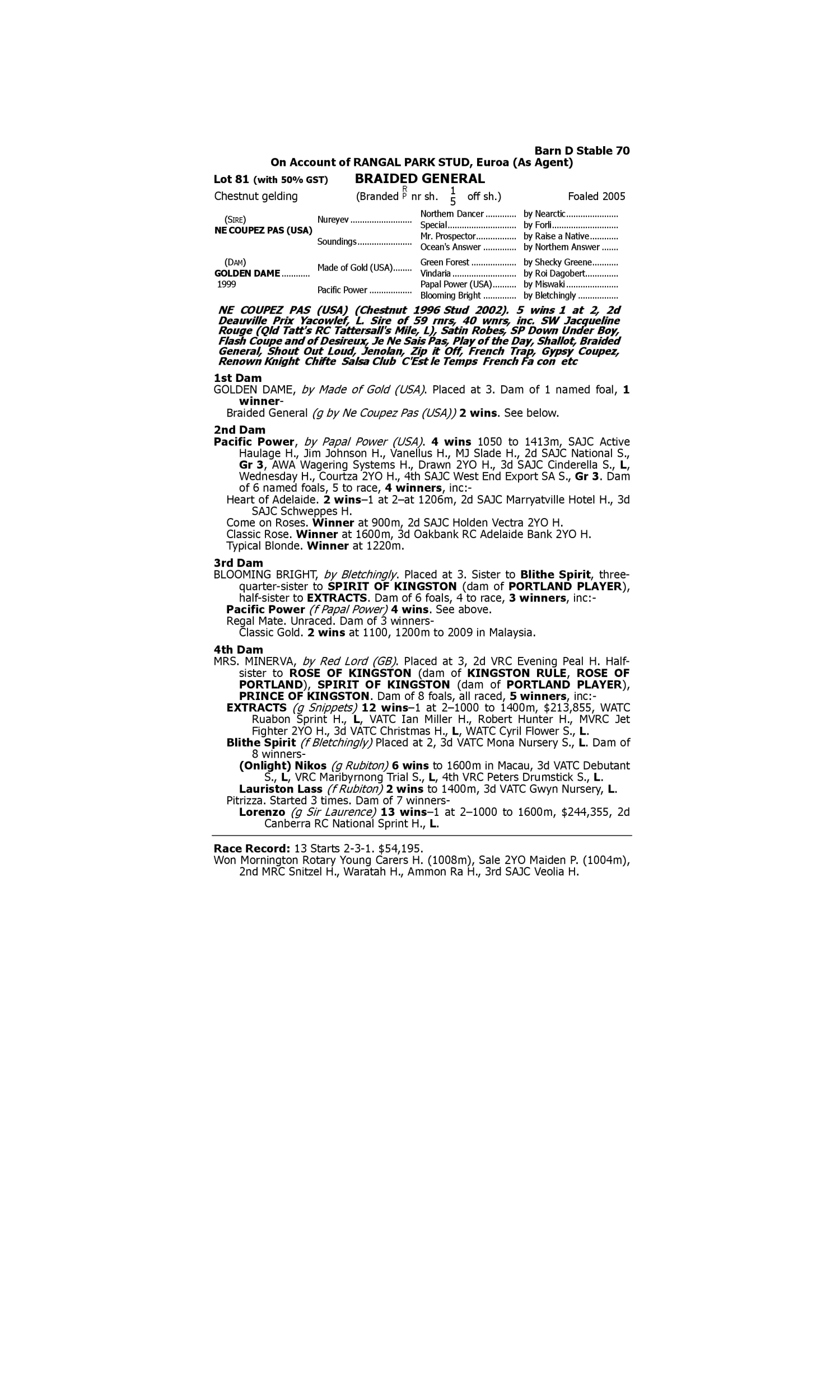 Pedigree for Lot 80 Fastnet Rock - These Days