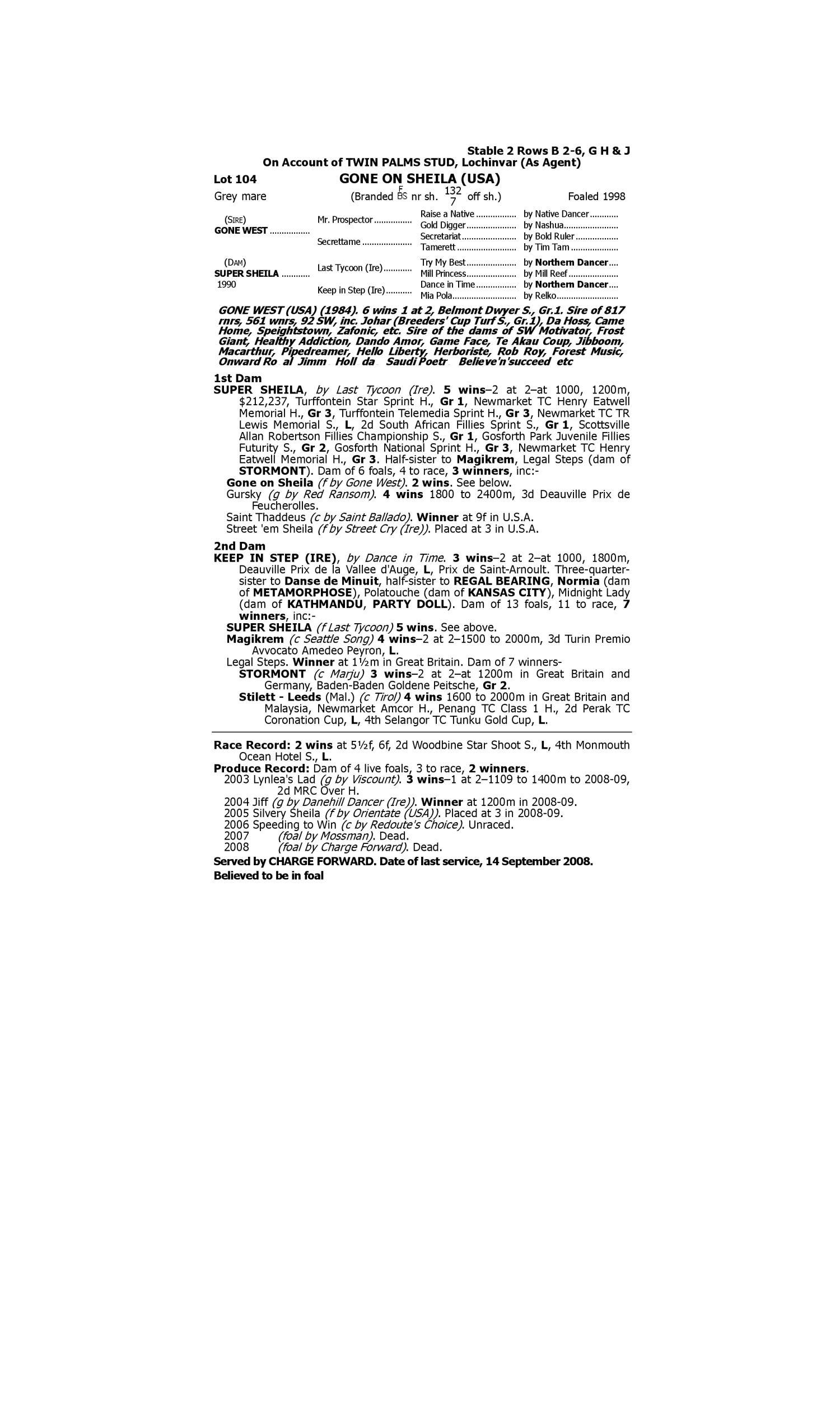 Lot 103 has pedigree updates since the release of the catalogue.