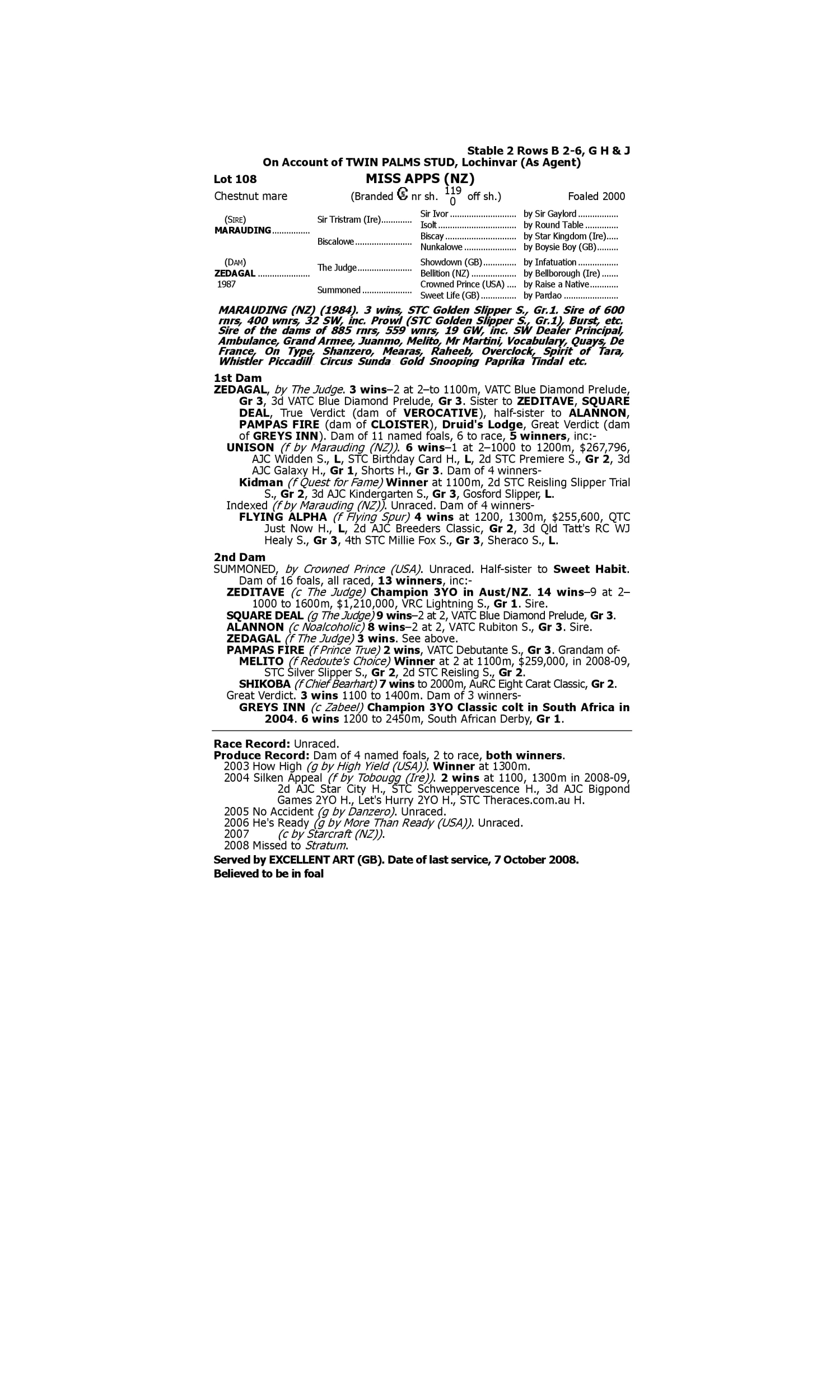 Pedigree for Lot 107 Redoute's Choice - Mica's Pride