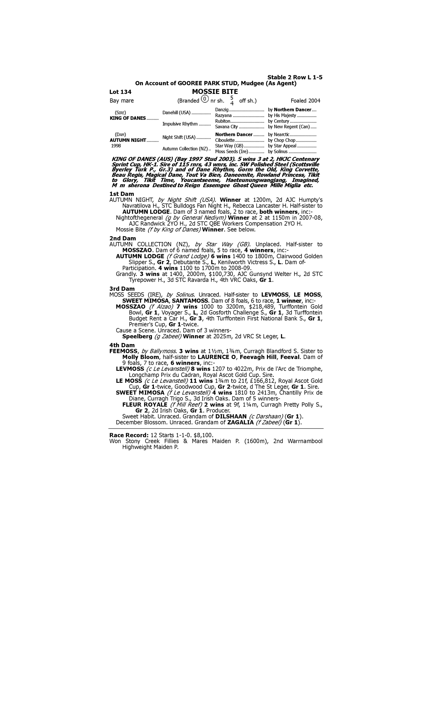 Lot 133 has pedigree updates since the release of the catalogue.