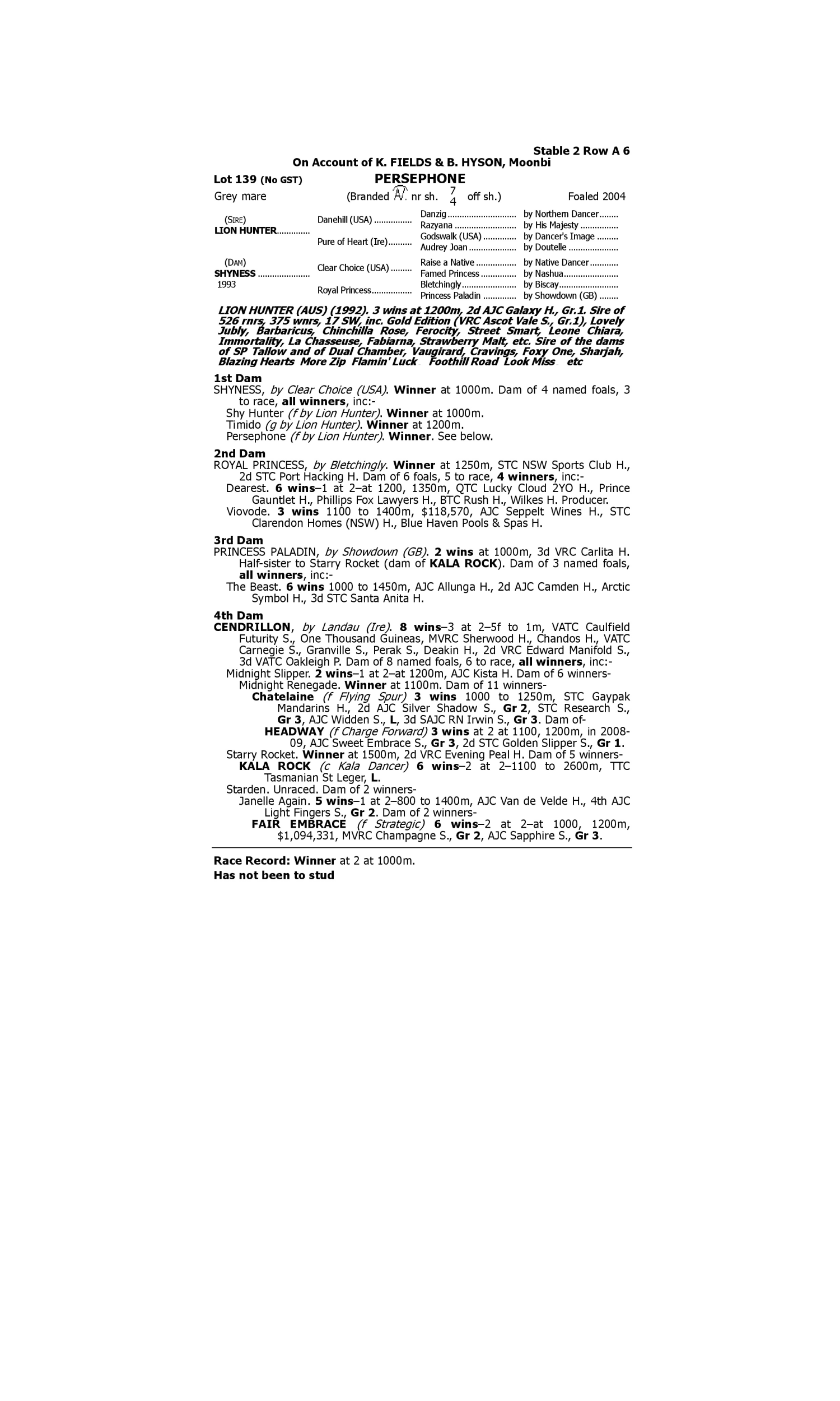 Pedigree for Lot 138 Lion Hunter - Gypsy Ann