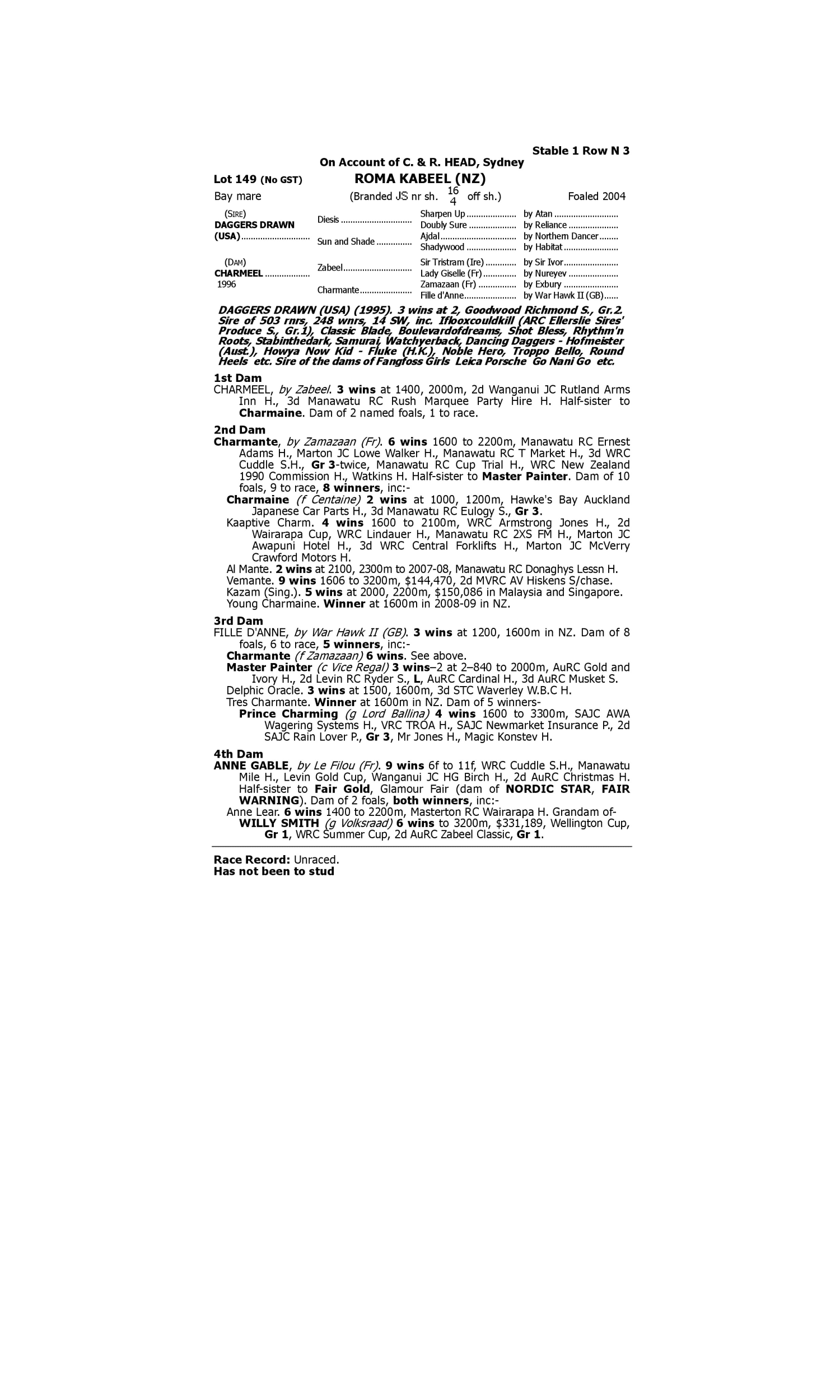 Lot 148 has pedigree updates since the release of the catalogue.