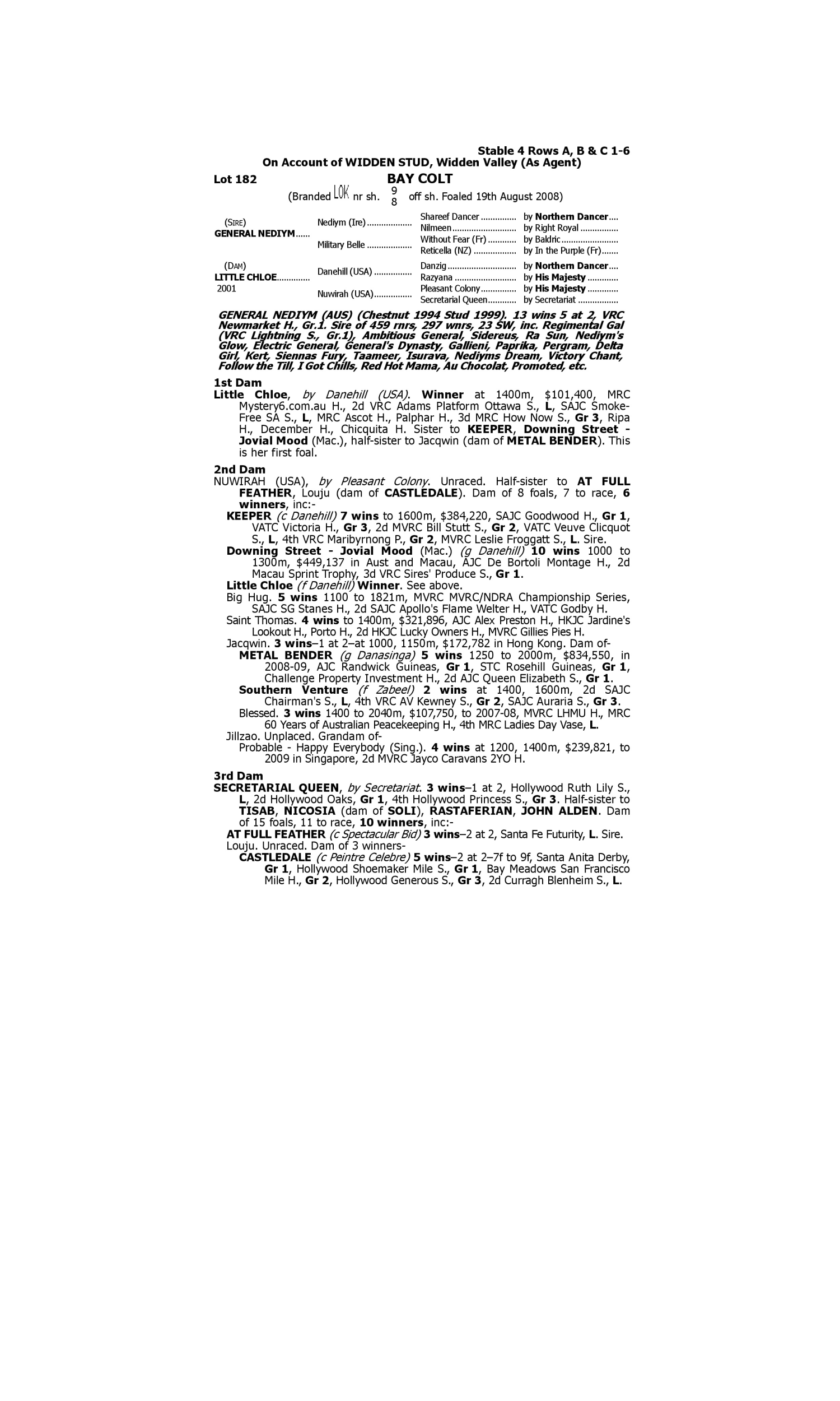Lot 181 has pedigree updates since the release of the catalogue.