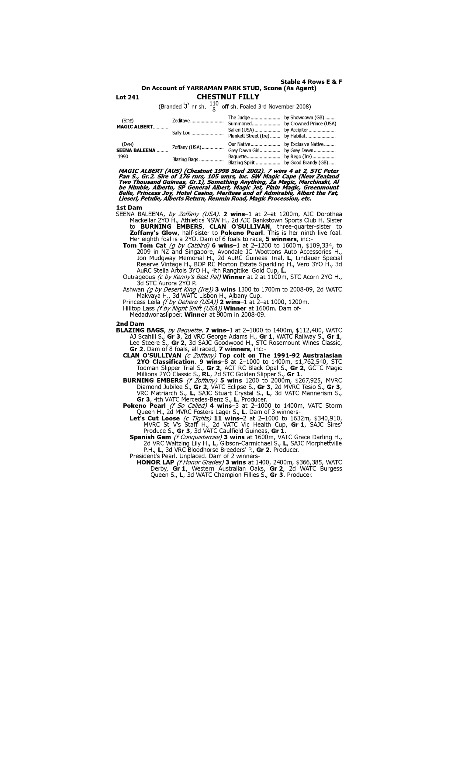 Lot 240 has pedigree updates since the release of the catalogue.
