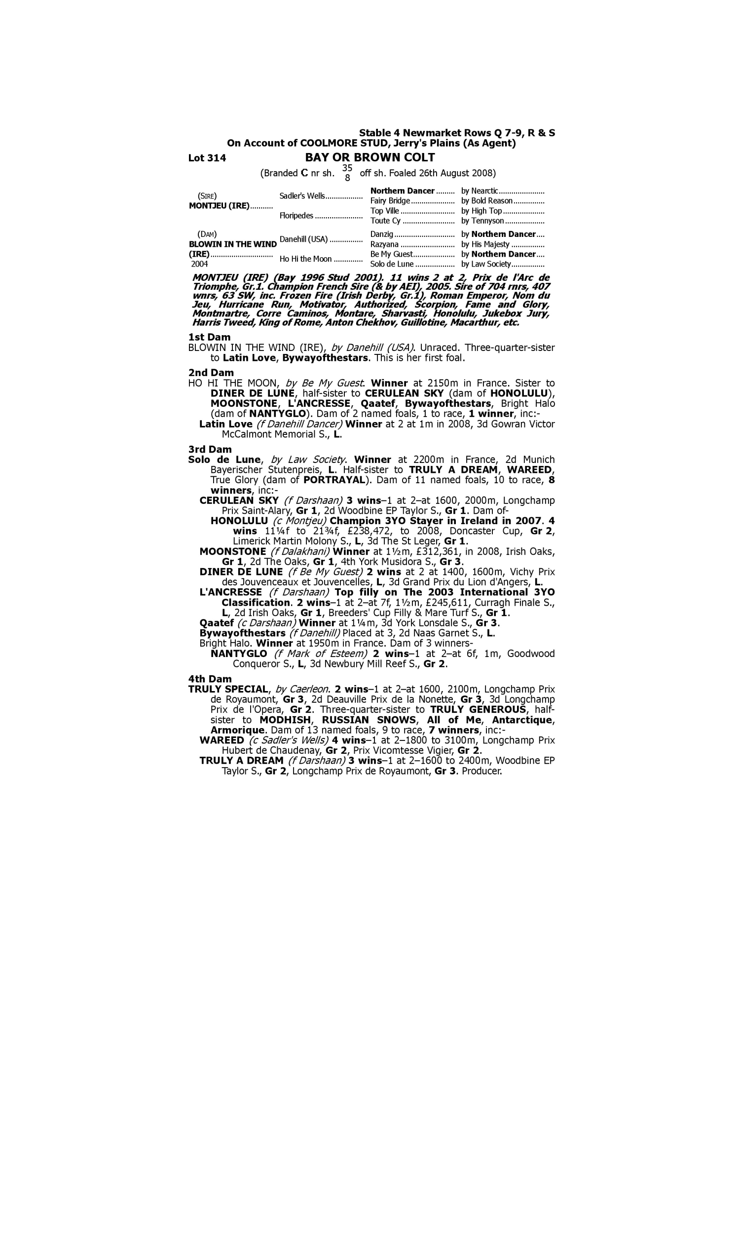 Pedigree for Lot 313 Oratorio (IRE) - Blayney Breeze (NZ)