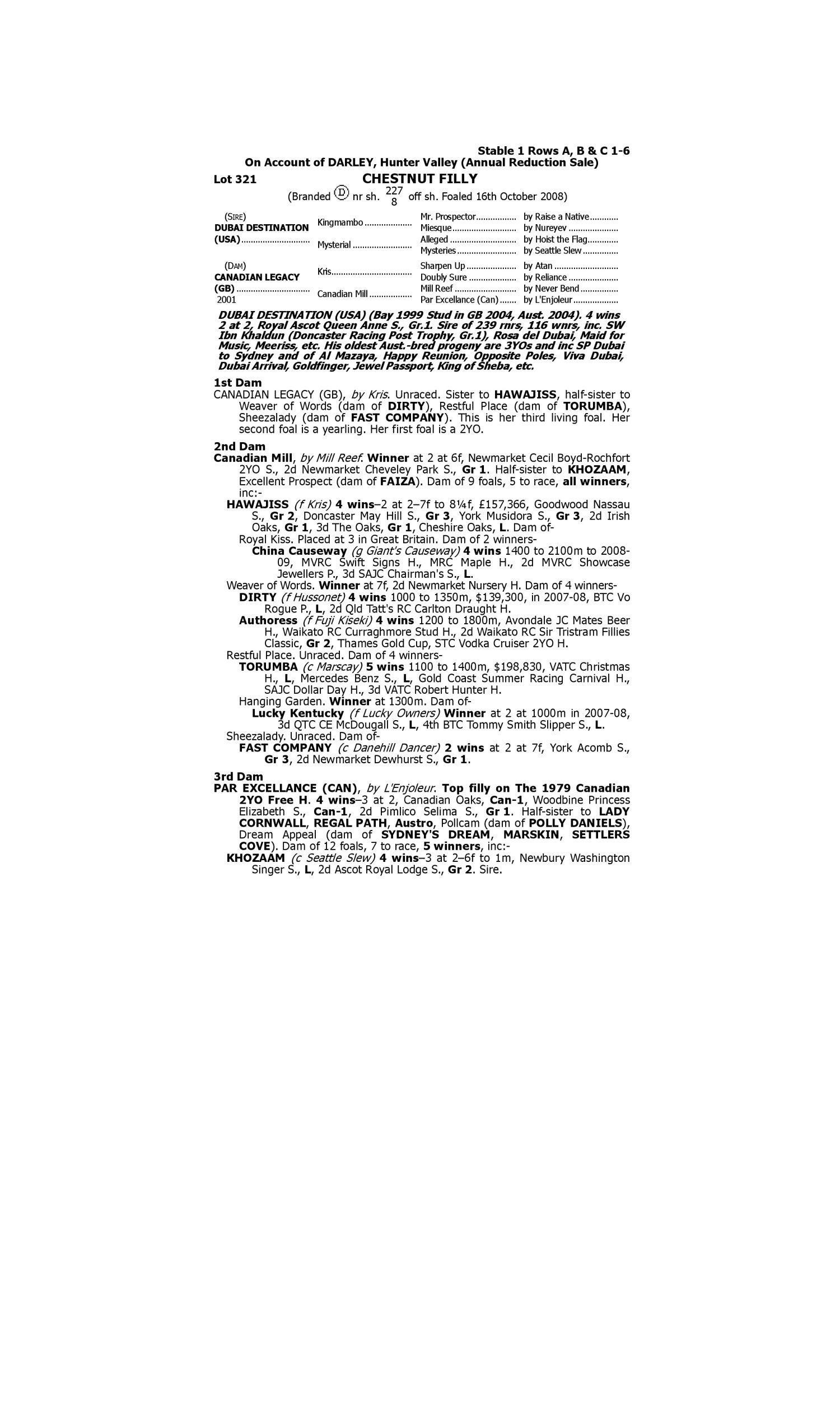 Lot 320 has pedigree updates since the release of the catalogue.