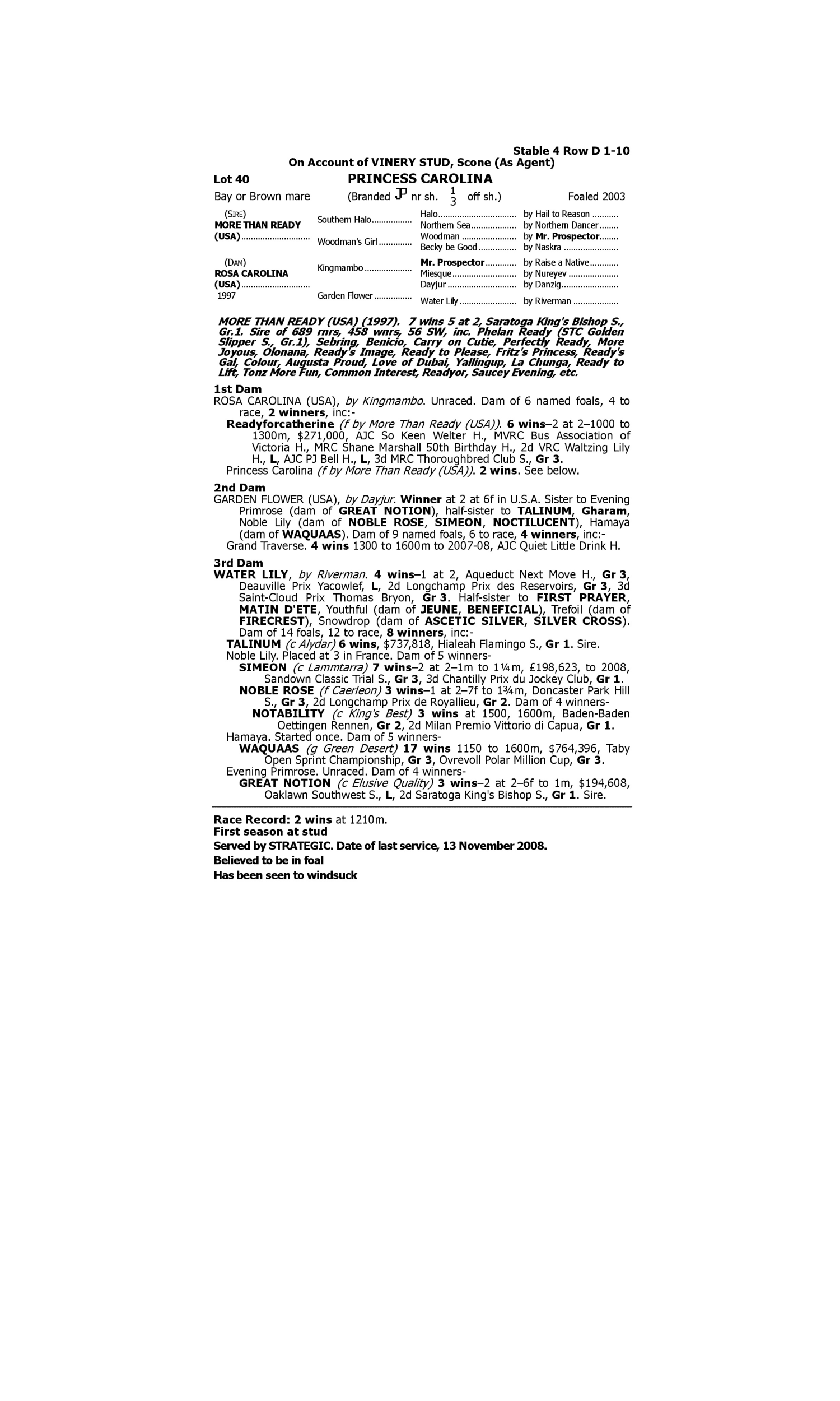 Lot 39 has pedigree updates since the release of the catalogue.