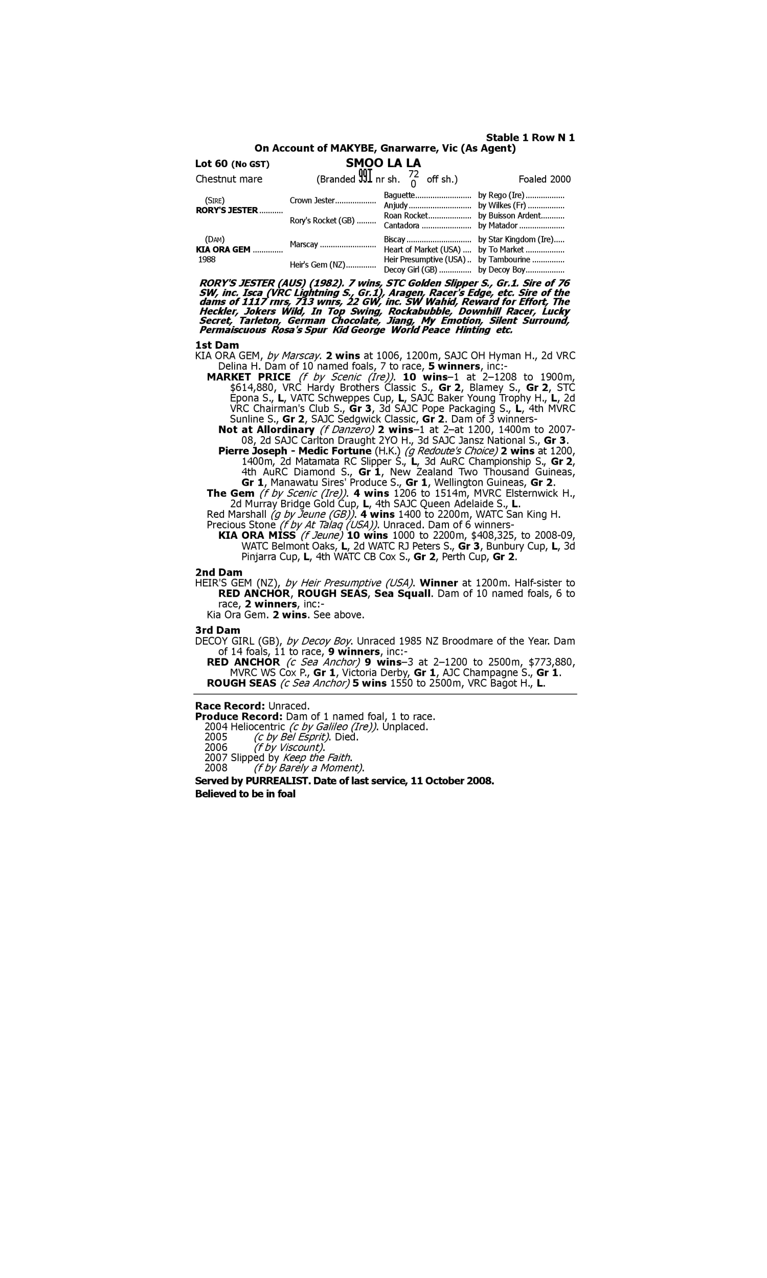 Lot 59 has pedigree updates since the release of the catalogue.