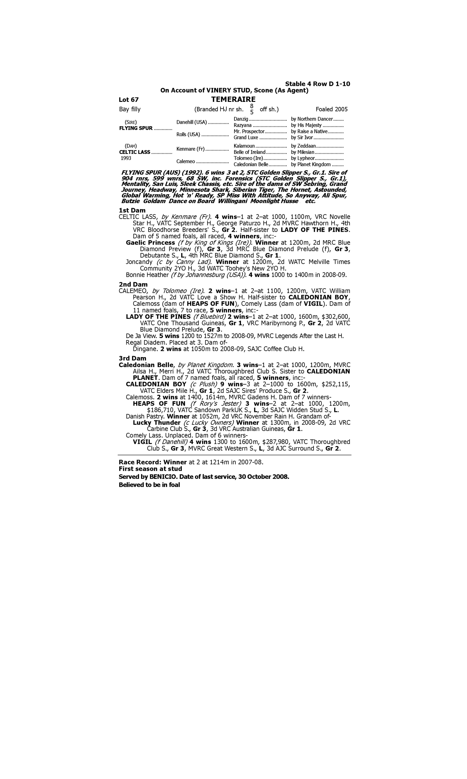 Lot 66 has pedigree updates since the release of the catalogue.