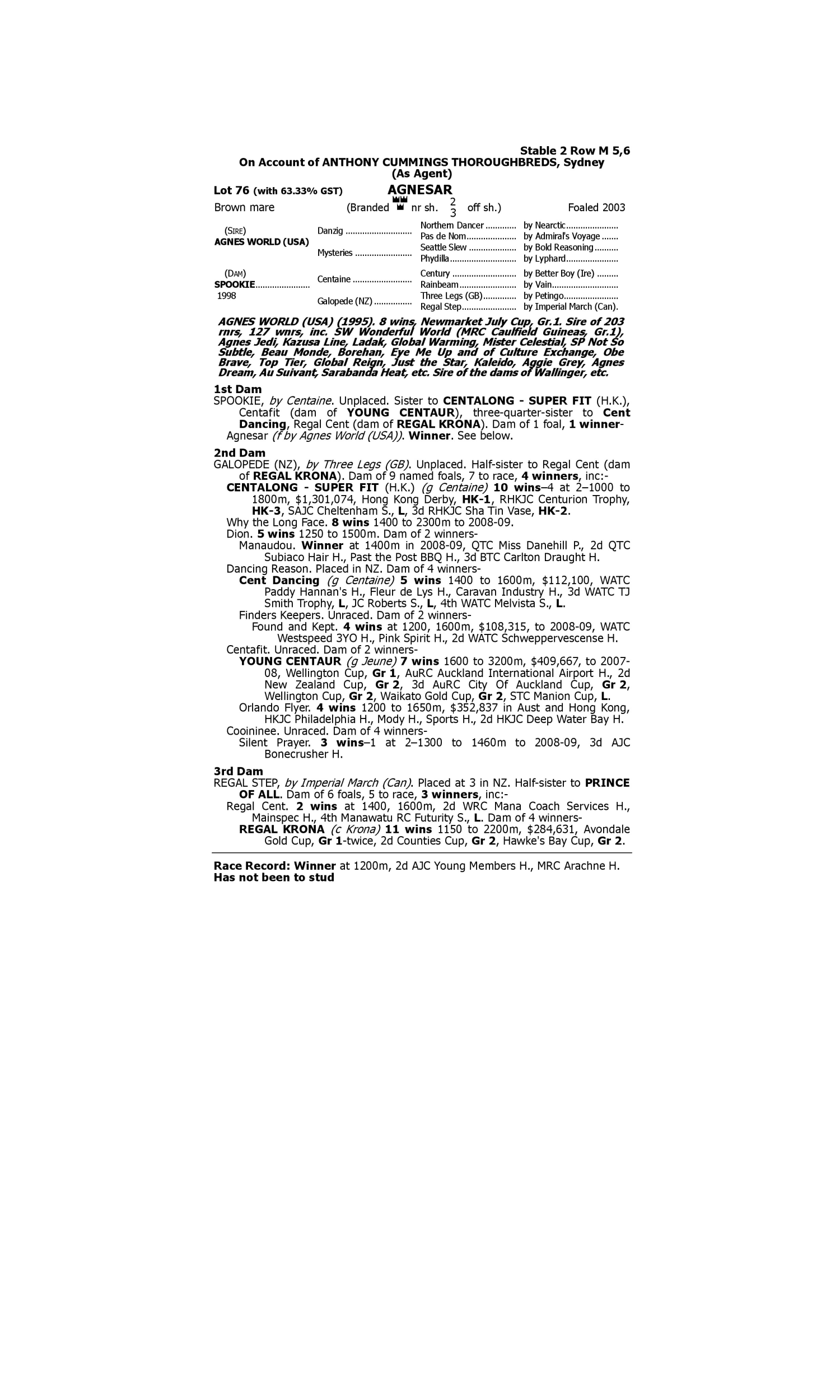 Lot 75 has pedigree updates since the release of the catalogue.