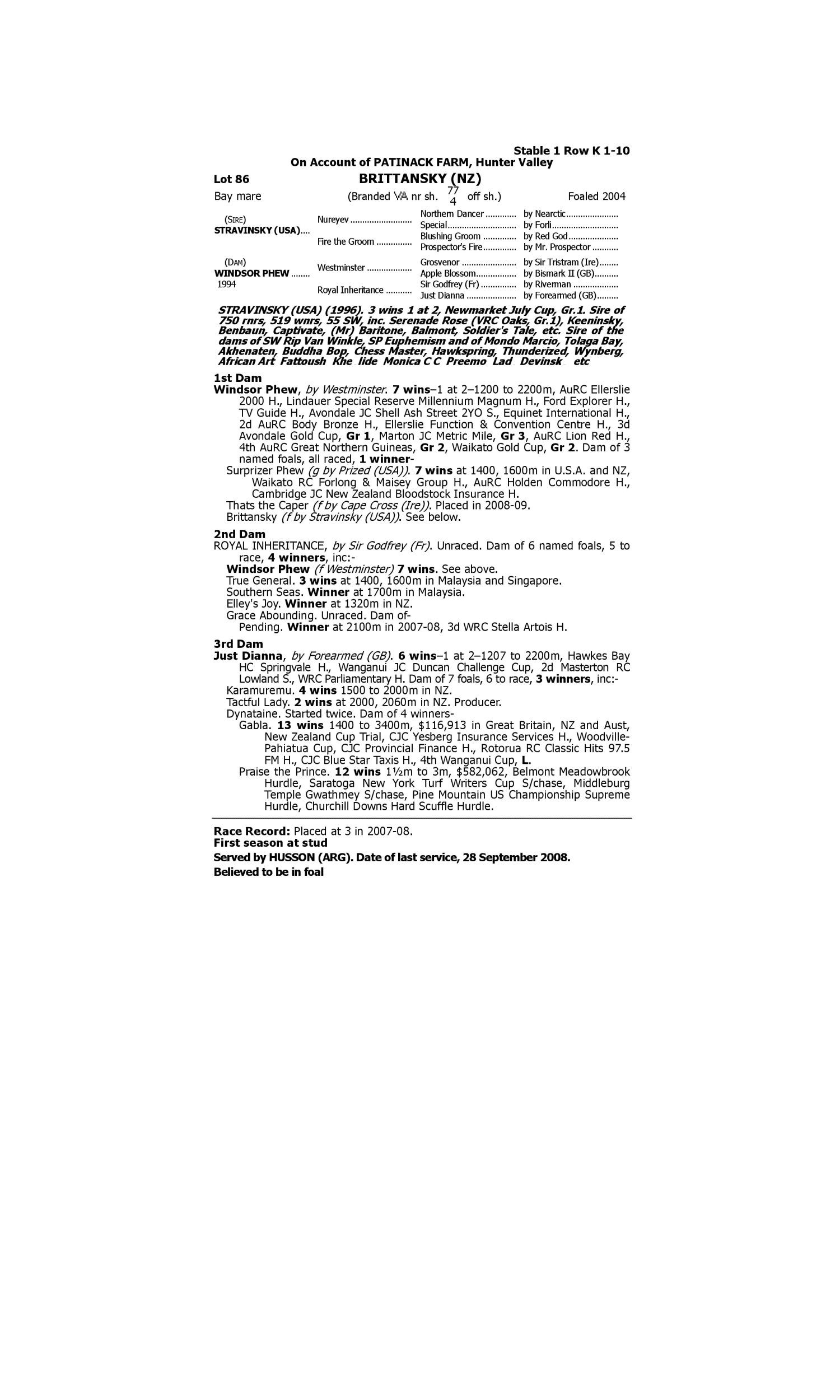 Lot 85 has pedigree updates since the release of the catalogue.
