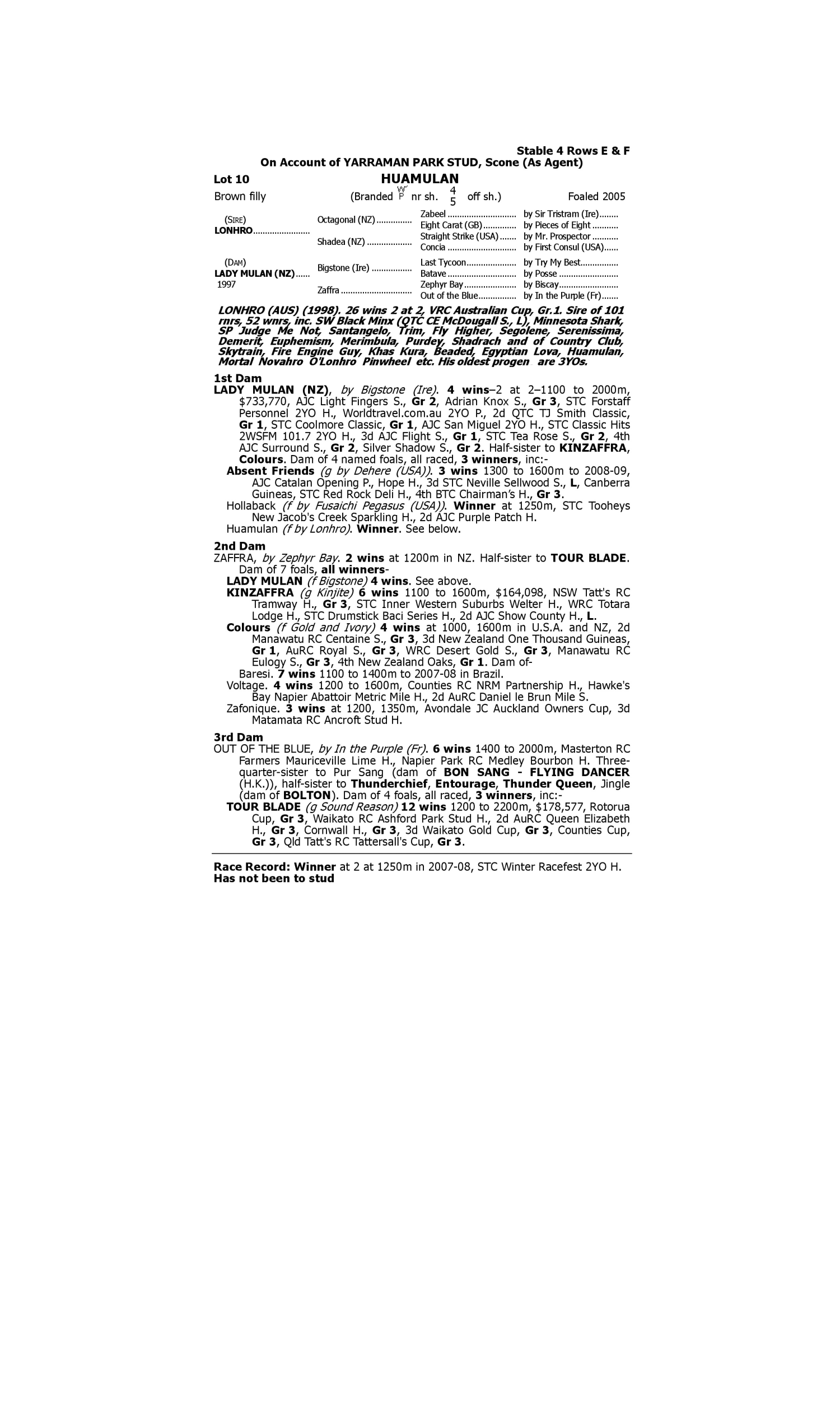 Lot 9 has pedigree updates since the release of the catalogue.