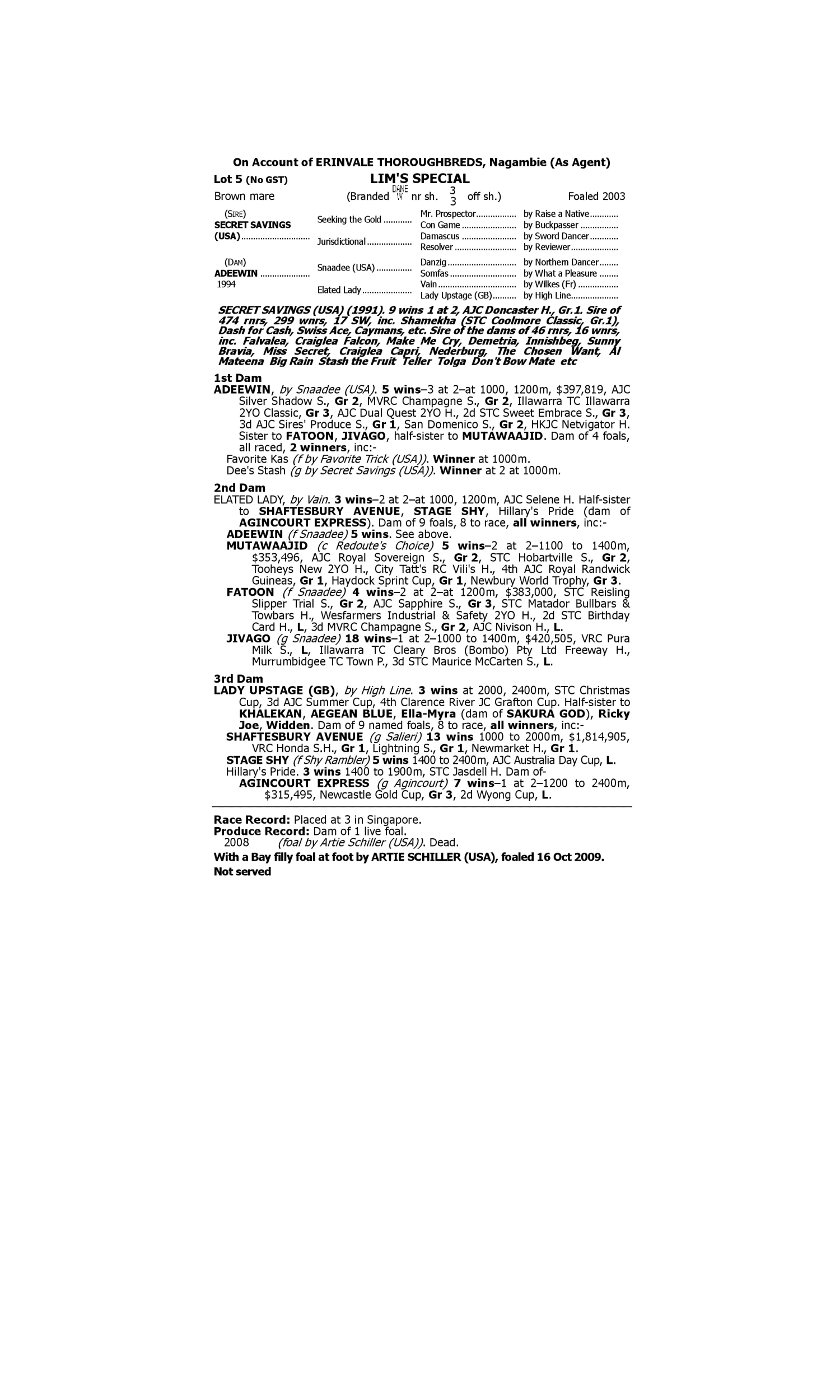 Pedigree for Lot 4 Portland Pirate - Kidada