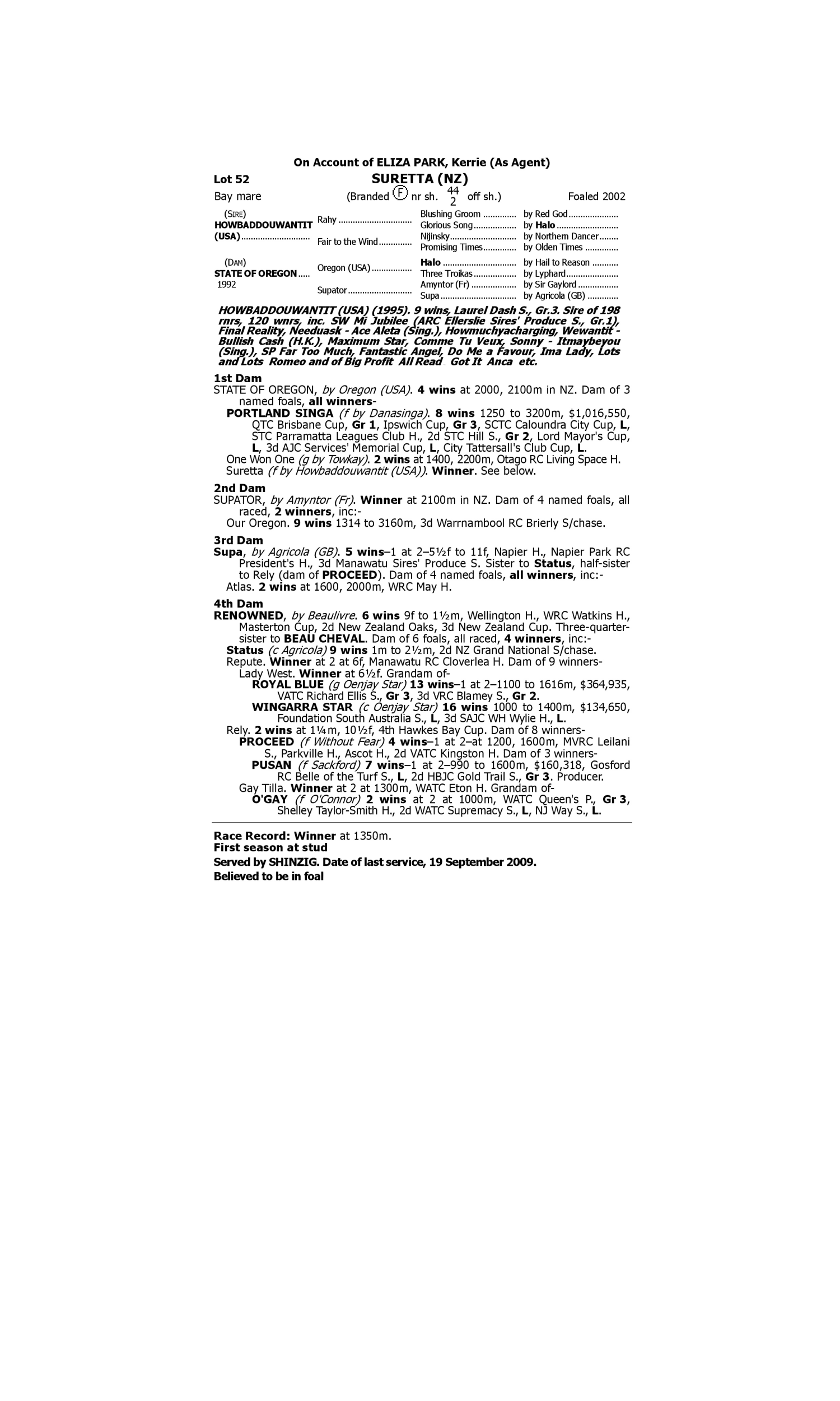 Lot 51 has pedigree updates since the release of the catalogue.