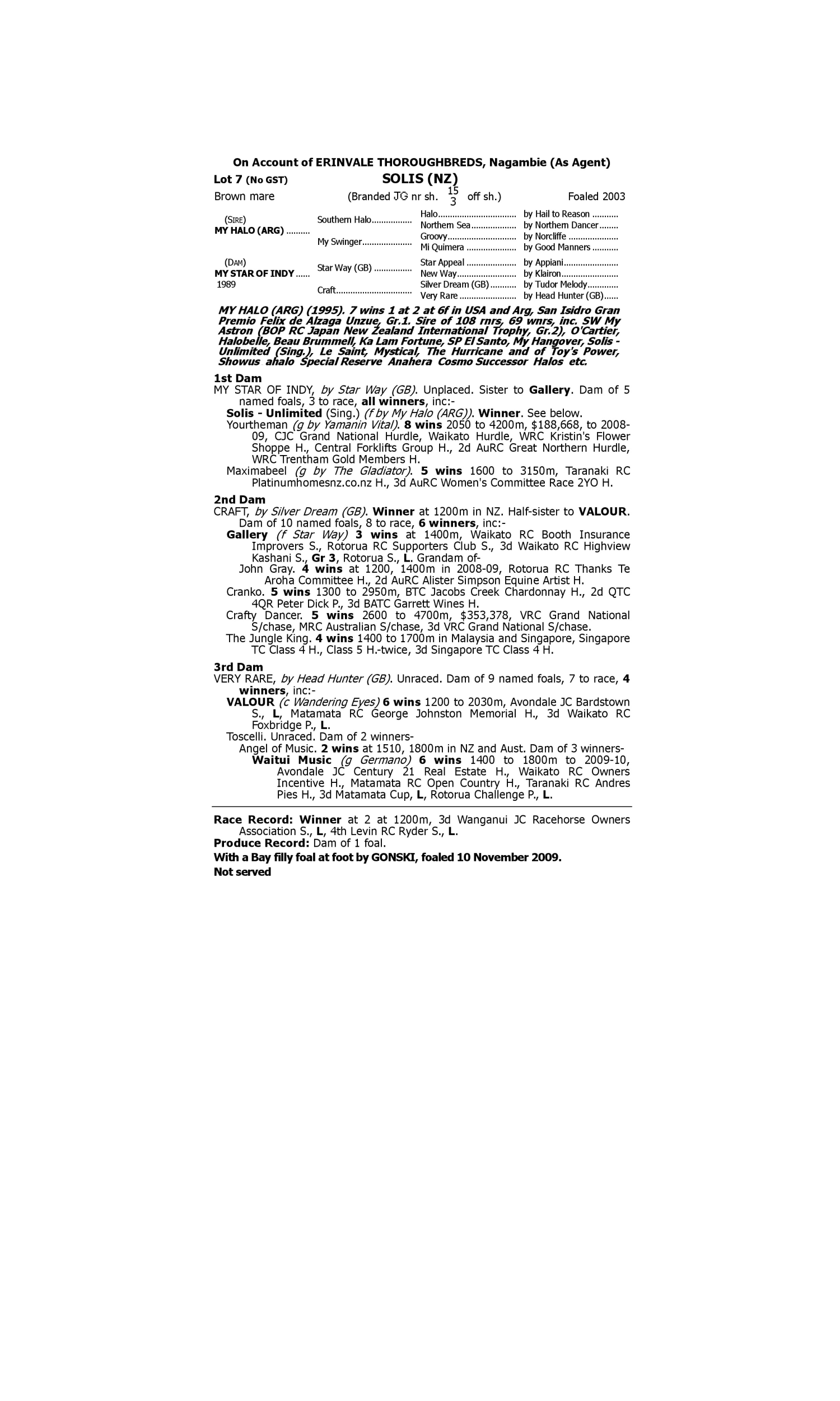 Lot 6 has pedigree updates since the release of the catalogue.