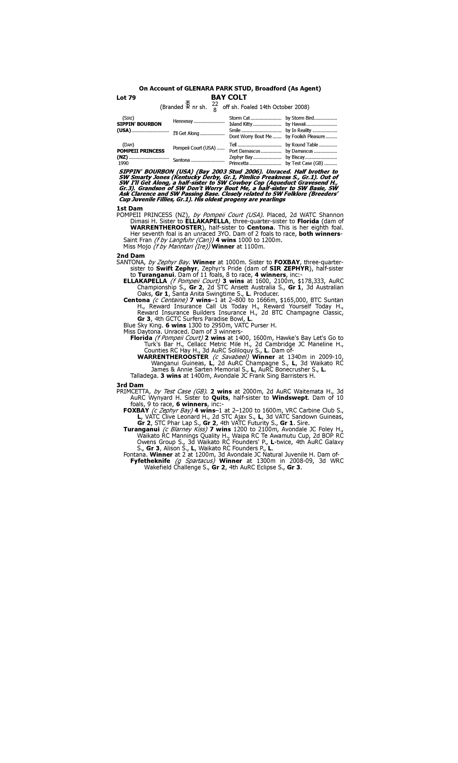 Lot 78 has pedigree updates since the release of the catalogue.