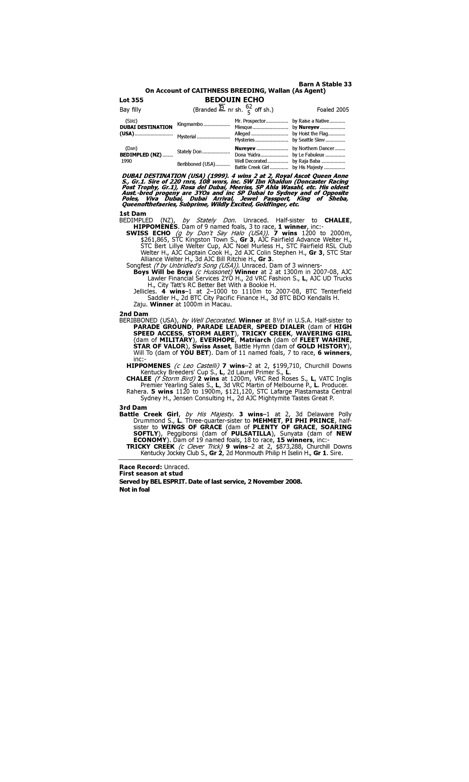 Pedigree for Lot 354 Snowland - Bella Dawn (USA)
