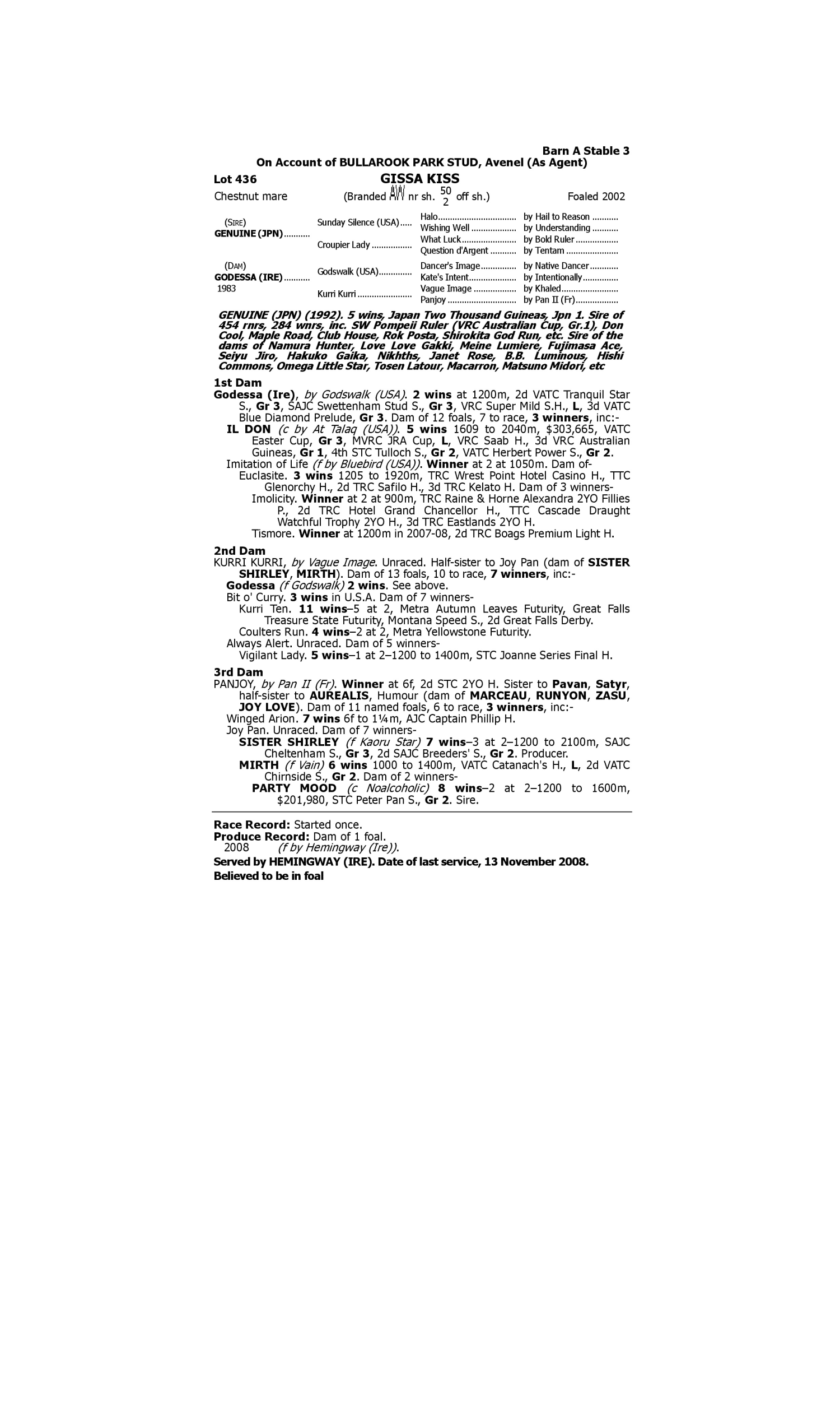 Pedigree for Lot 435 King of Prussia - Miss Tatum