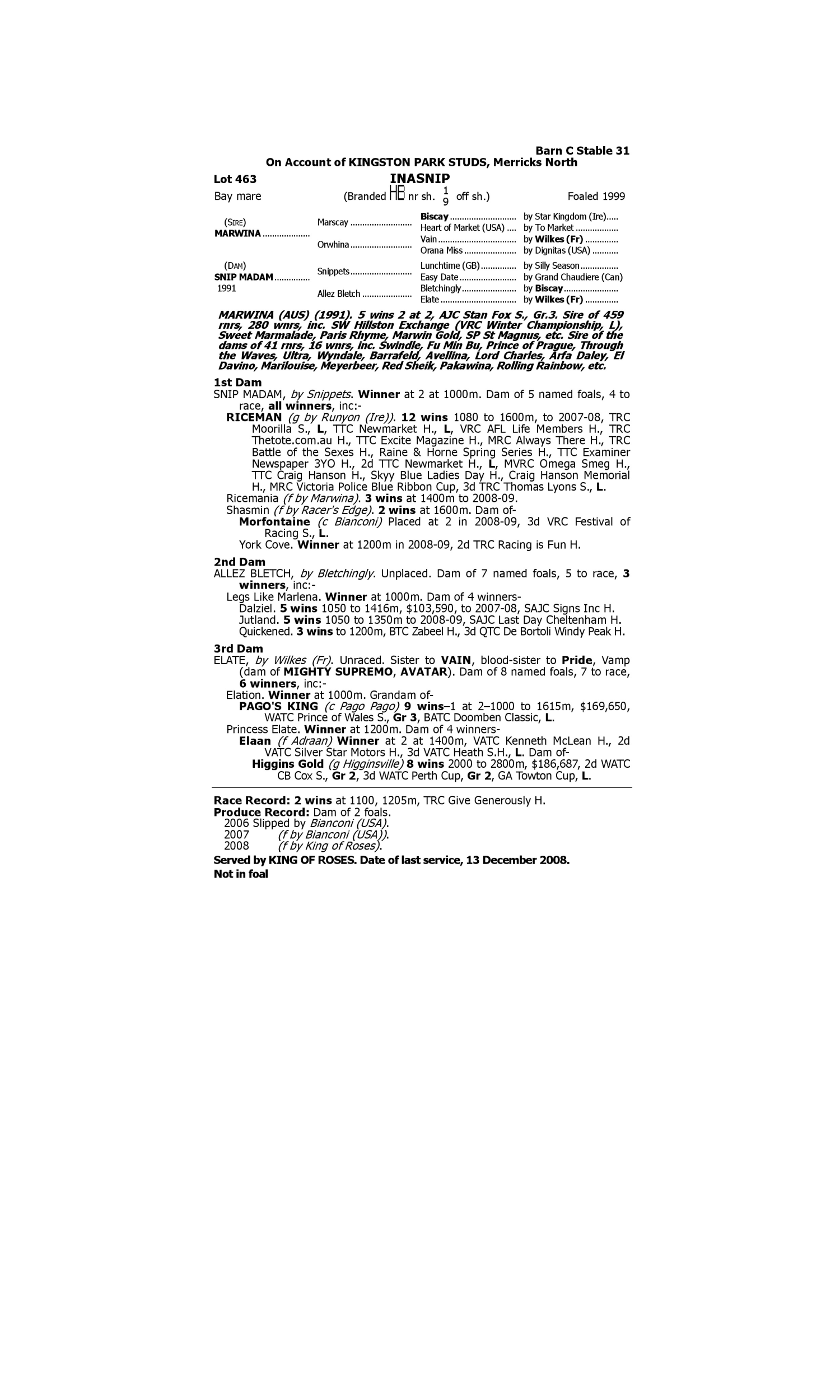 Lot 462 has pedigree updates since the release of the catalogue.