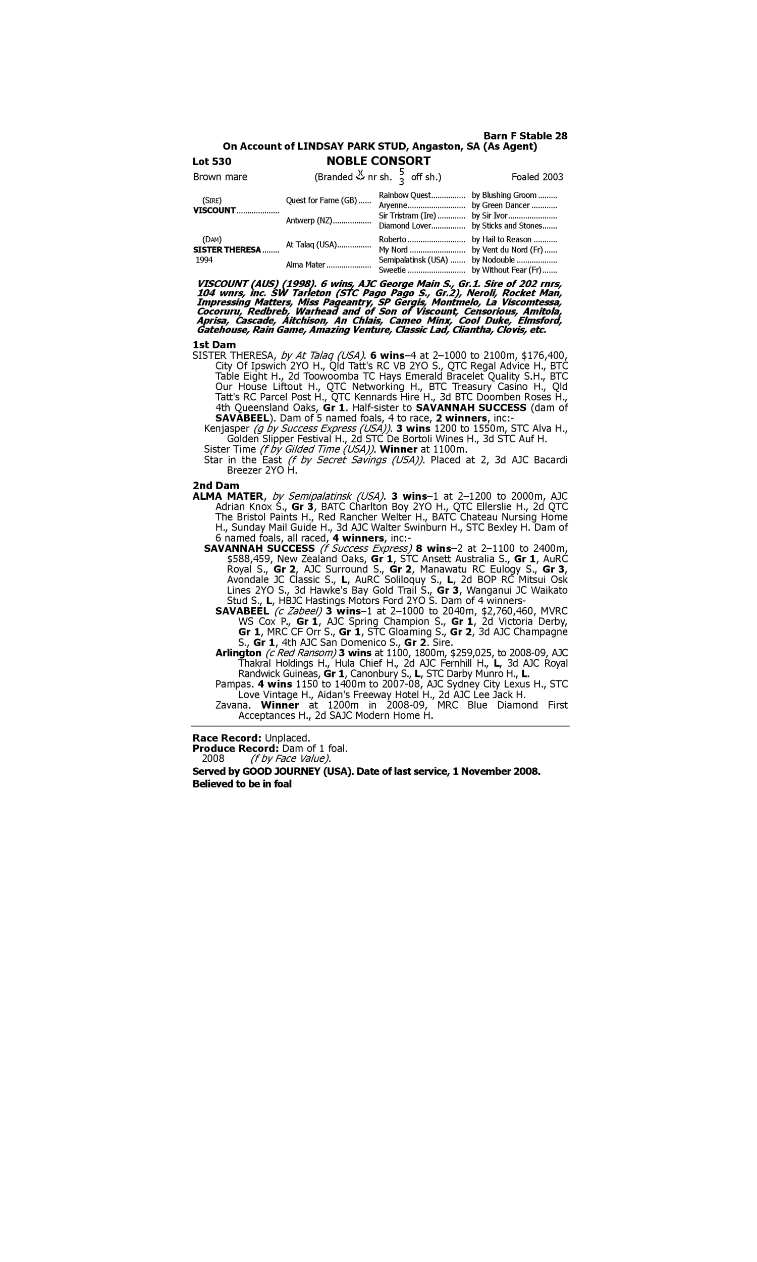 Lot 529 has pedigree updates since the release of the catalogue.