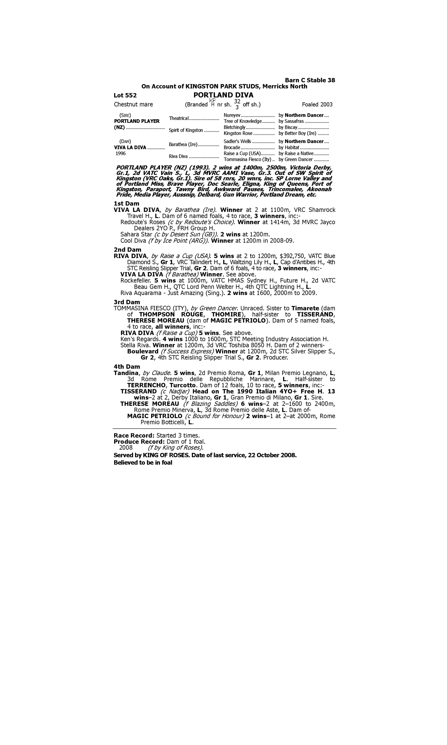 Lot 551 has pedigree updates since the release of the catalogue.