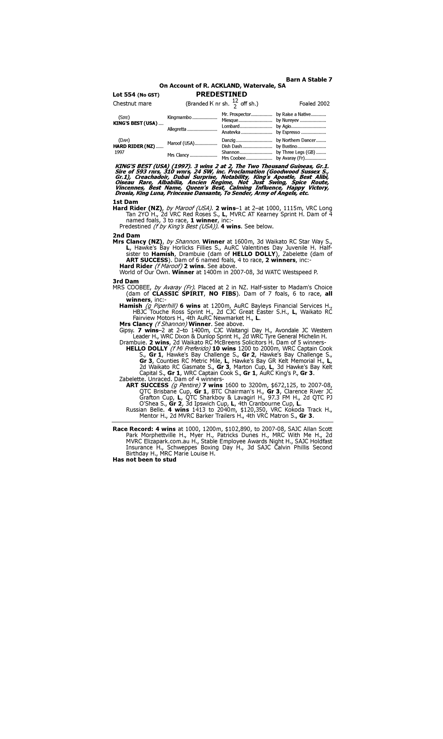 Lot 553 has pedigree updates since the release of the catalogue.