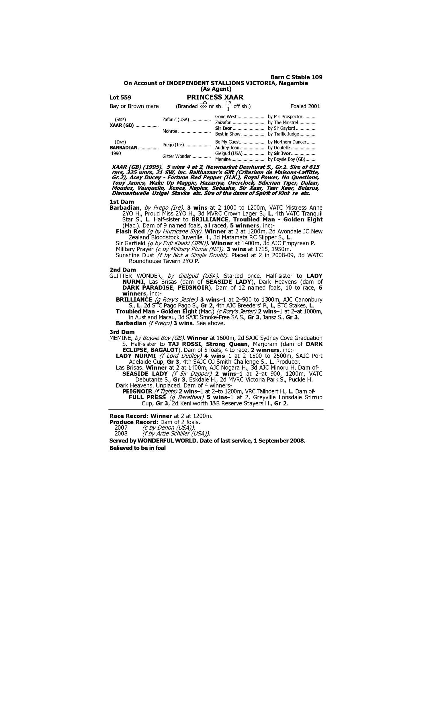 Lot 558 has pedigree updates since the release of the catalogue.