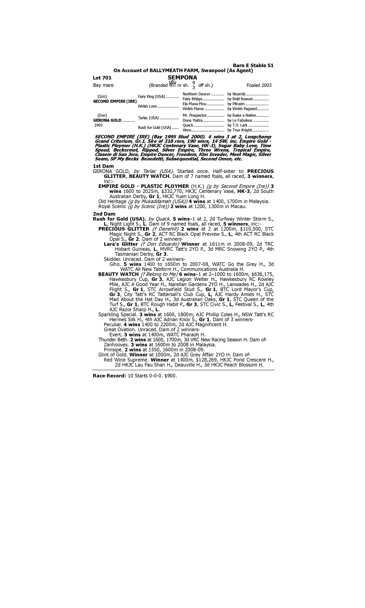 Festival Princess (2005.f. by Barathea-Uliana, by Darshaan-Sombreffe). 2nd Naas Blue Wind S. Gr.3 LAA RAYB (2004.g. by Storm Cat-Society Lady, by Mr. Prospector-La Voyageuse). 3rd Ascot Paradise S. L TALETOBETOLD (2004.f. by Tale of the Cat-Exigent, by Miswaki-L'Extravagante). 1st Indiana Downs Shelby County S. L Just a Coincidence (2006.c. by Forestry-Scads, by Forty Niner-Slew and Easy). 4th Aqueduct Withers S. Gr.3 Ciel Rouge (2006.f. by Red Ransom-Raisonnable, by Common Grounds-Salvora). 3rd Toulouse Prix Aymeri de Mauleon L TRUST OR BUST (2005.c. by Trust n Luck-Dance Lead, by Nureyev-Leading the Way). 1st Mountaineer Panhandle H. L 1st Charles Town Webb Snyder S. L