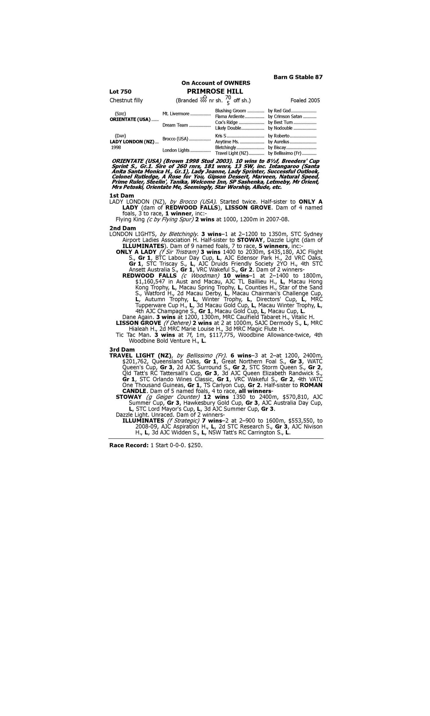 Lot 749 has pedigree updates since the release of the catalogue.
