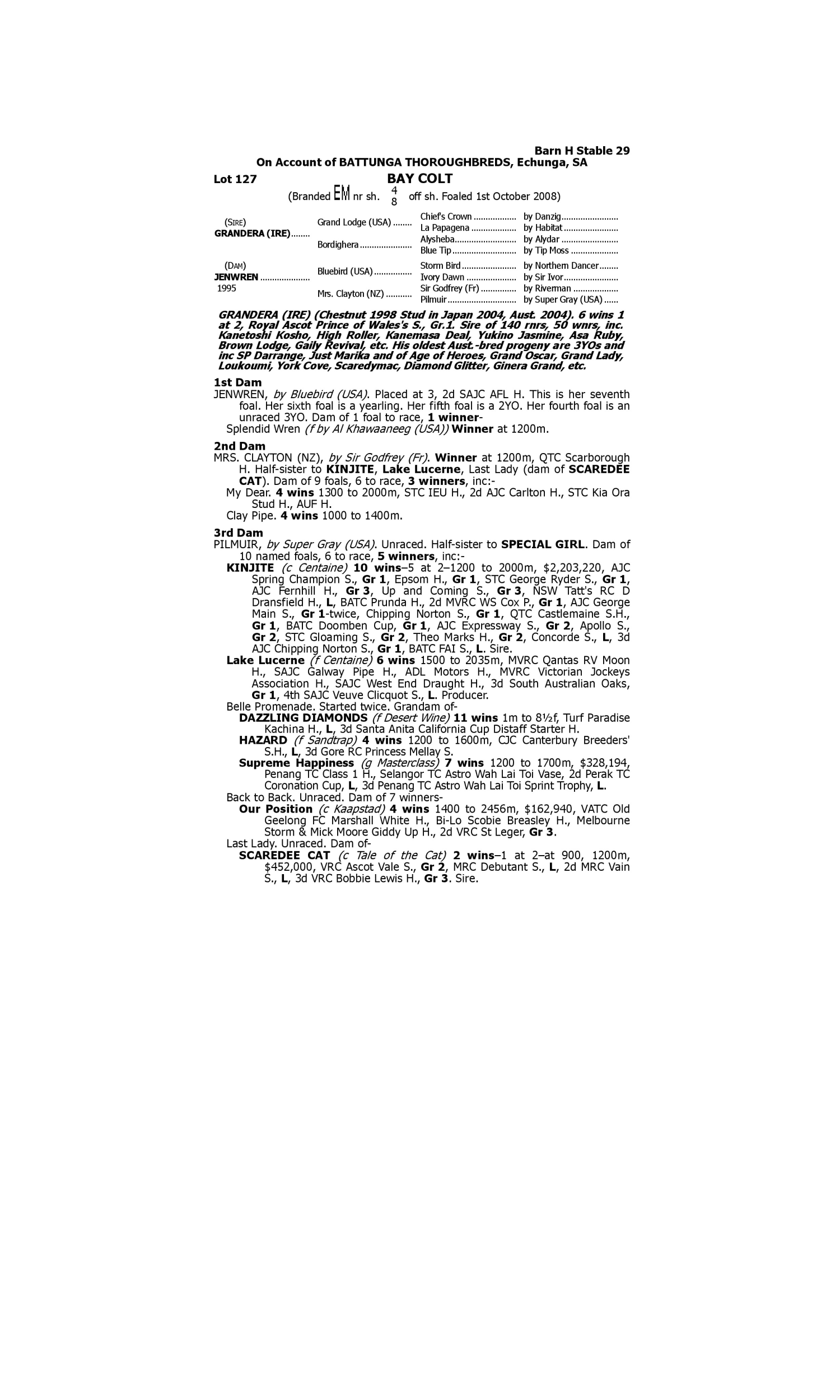 Lot 126 has pedigree updates since the release of the catalogue.