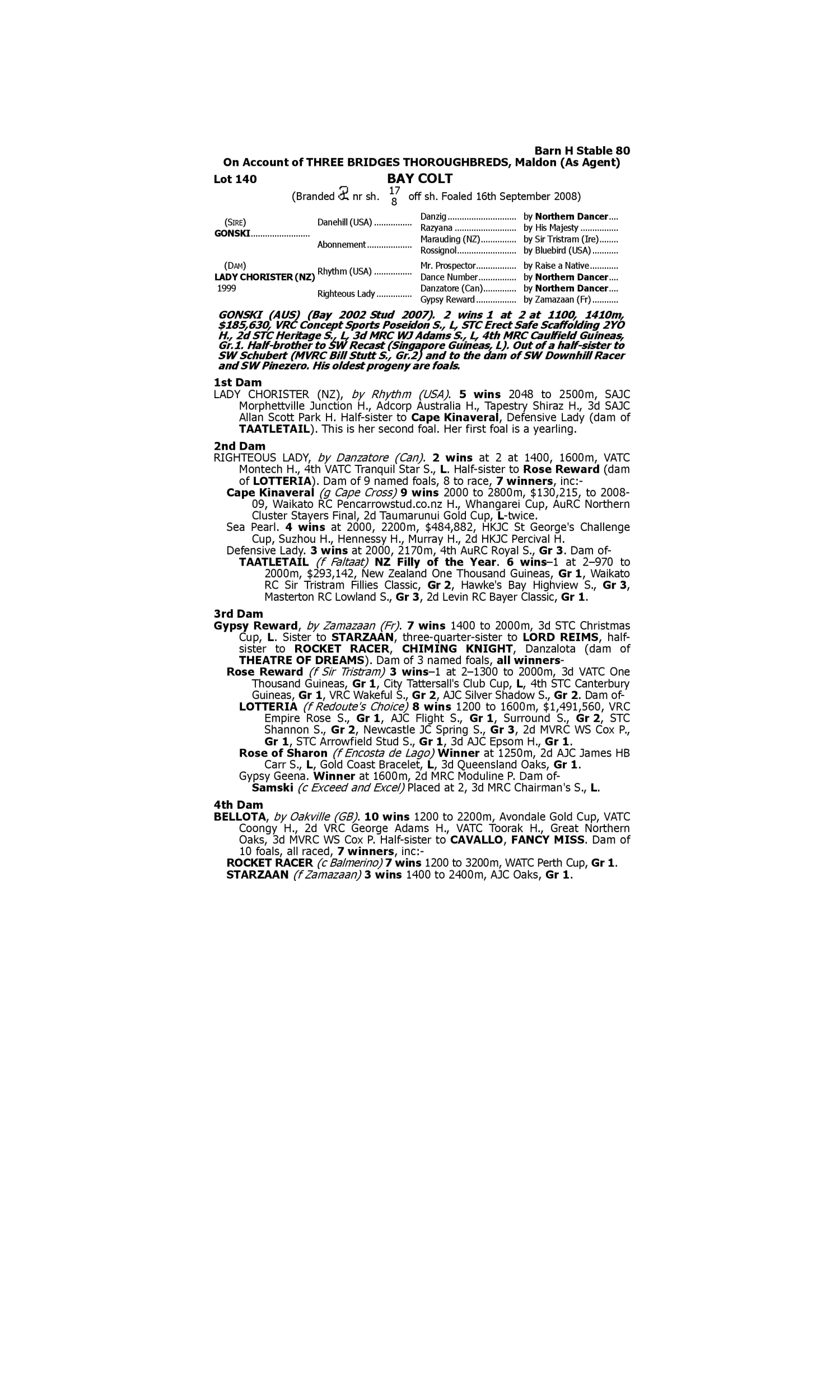 HE'S QUITE A GUY (2003.g. by Dixieland Brass-She's Quite a Gal, by Private Account-Milaoshu). 1st Sun Downs Claiming REDISUR (2002.n. by Bandal-Terrapin, by Green Dancer-Turtle Cove). 1st Rancho Alegre Copa Dia del Trabajador Lord Rock Star (2006.c. by Rock of Gibraltar-Lady Pastel, by Tony Bin-Pink Turtle). 1st Hanshin Hanamizuki Sho 3rd Kyoto Shimbun Hai Gr.2