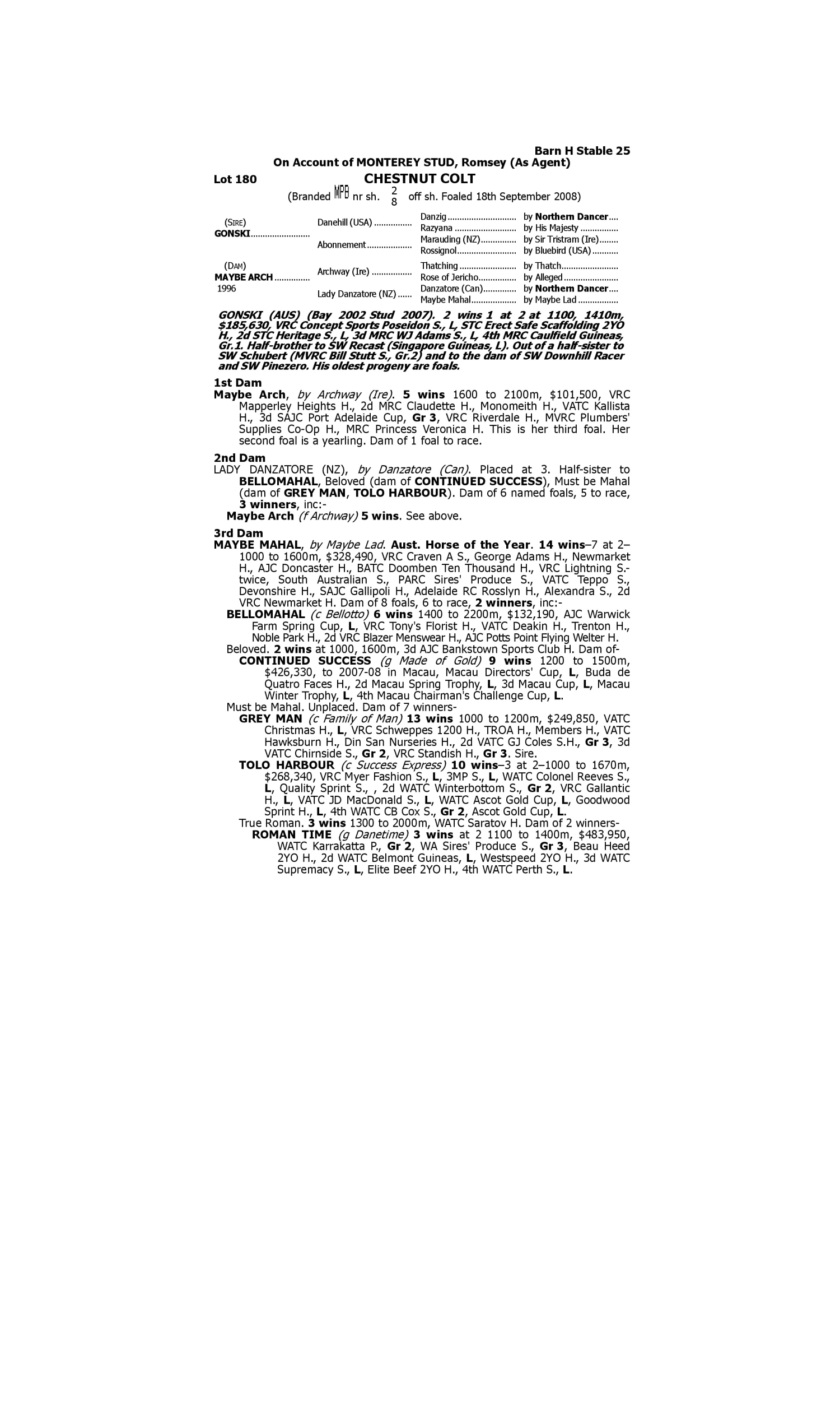 Lot 179 has pedigree updates since the release of the catalogue.