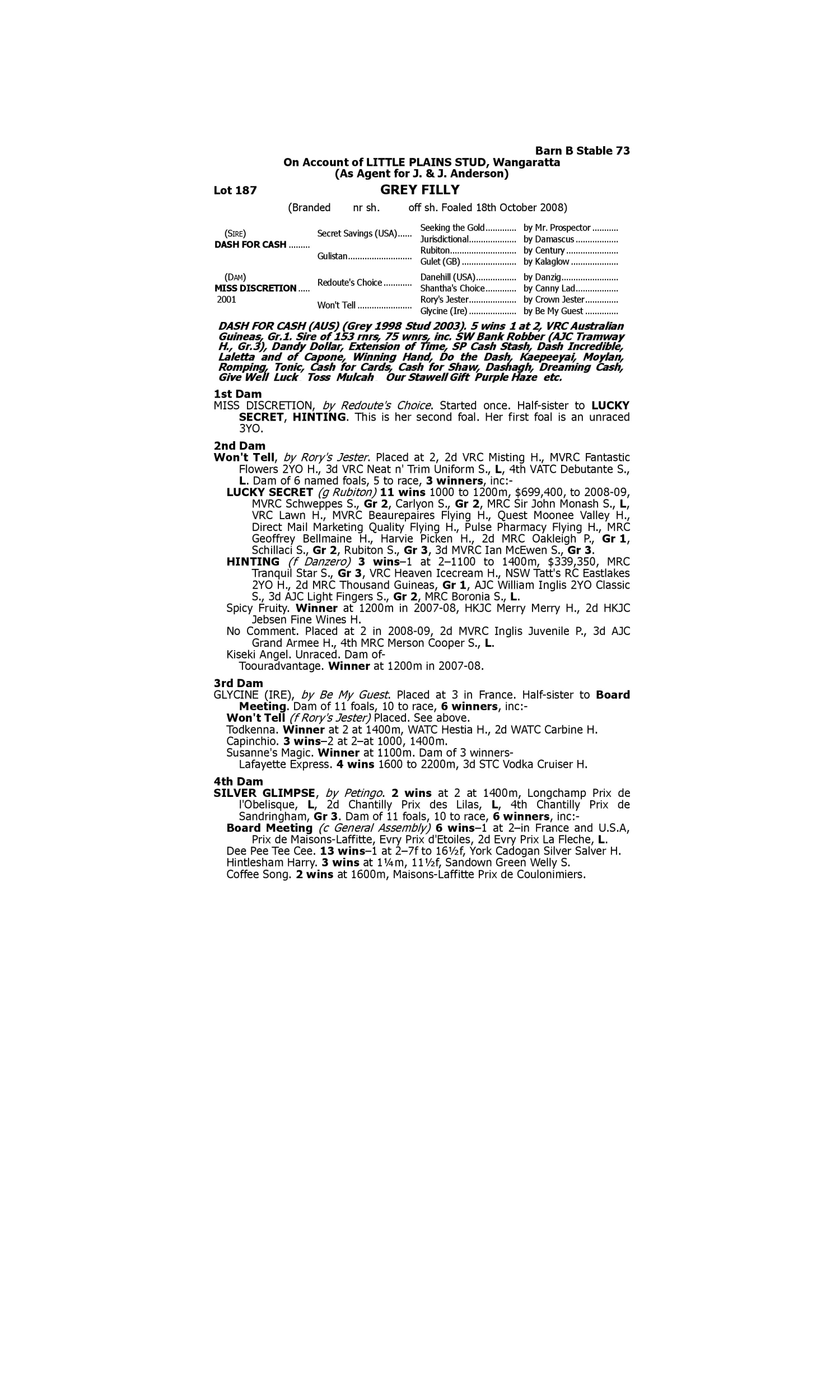 Pedigree for Lot 186 King de Lago - Miss Bellagio