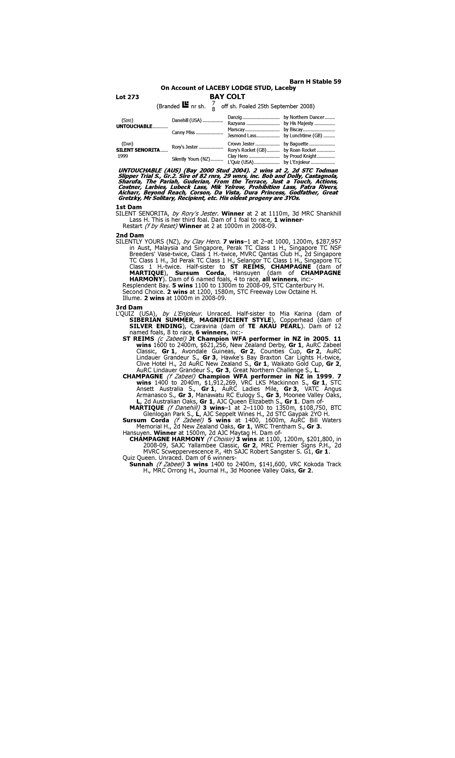 Substitute (2004.g. by Keltrice-Voodoo Show, by Voodoo Rhythm-Show Day). 1st Wodonga TC Bill McGrath Pty Ltd Maiden P. CHAKVETADZE (2005.f. by Taimazov-Gotha, by Rustic Amber-Lady Marita). 1st Gold Coast Guineas Gr.3 1st QTC (Eagle Farm) Ryan's Winning Edge Trophy H.