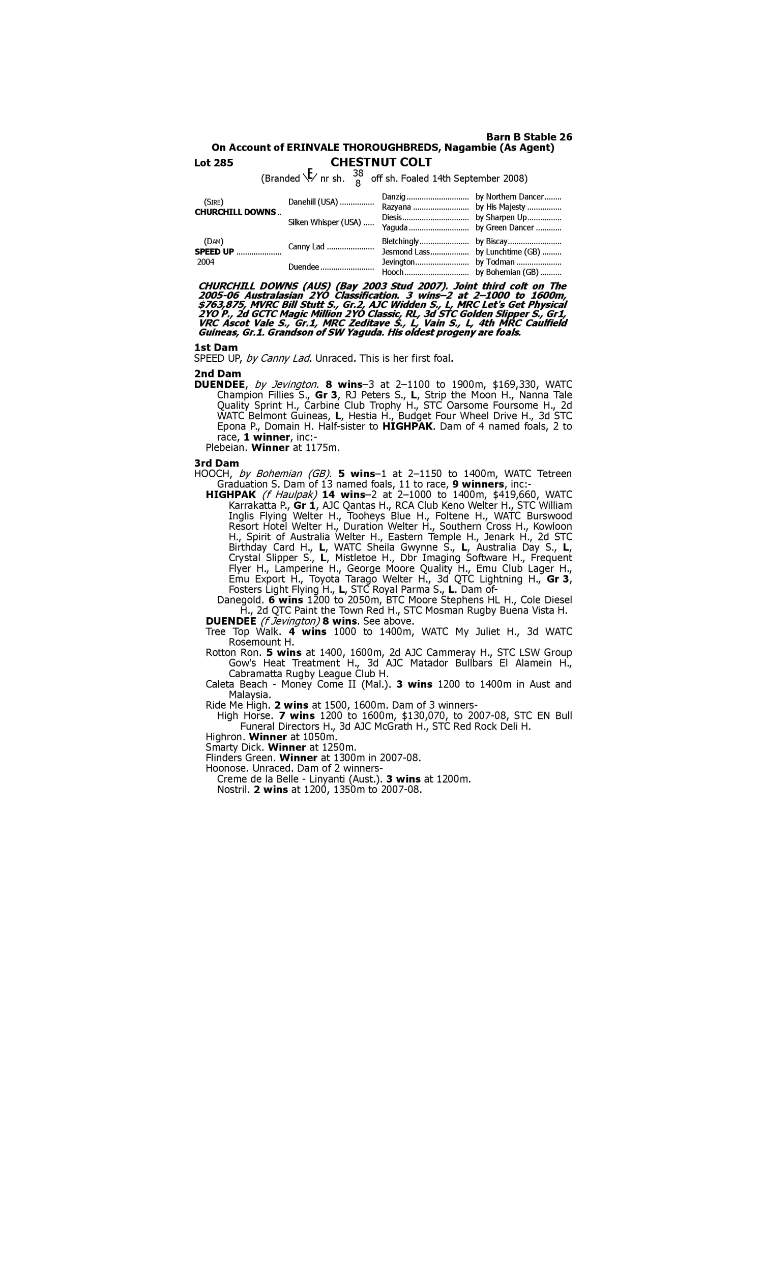 Miss Alert (2005.f. by More Than Ready-Quam Cleeriter, by Hector Protector-Midori Splice). 1st STC (Canterbury) Rosehill Gardens Event Maiden H. TARZI (2002.g. by Desert Prince-Majestic, by Twig Moss-Shaybisc). 2nd WATC (Ascot) Grandstand Cup L Serenissima (2005.f. by Lonhro-Santissima, by Quest for Fame-Sashed). 3rd AJC (Randwick) PJ Bell H. L