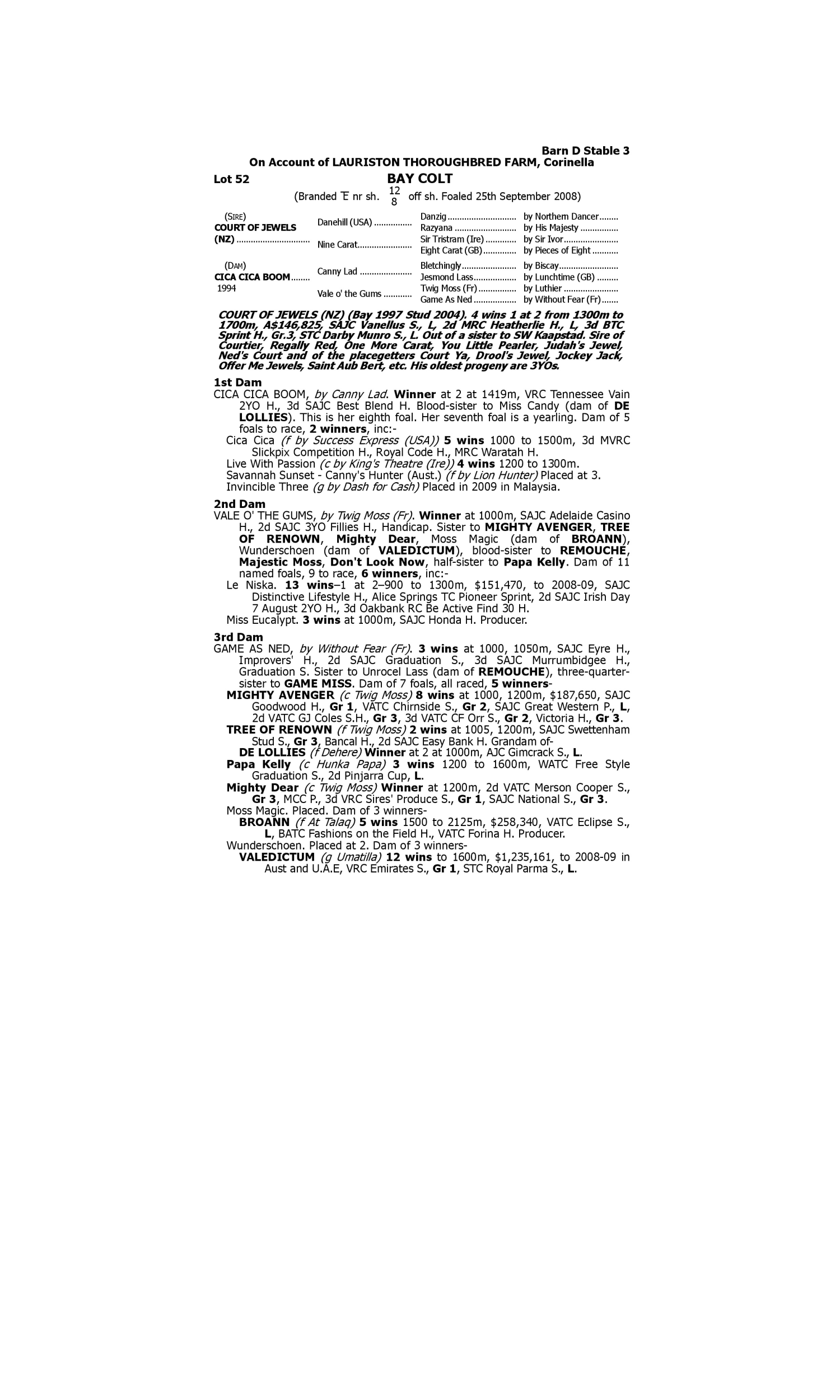 Lot 51 has pedigree updates since the release of the catalogue.
