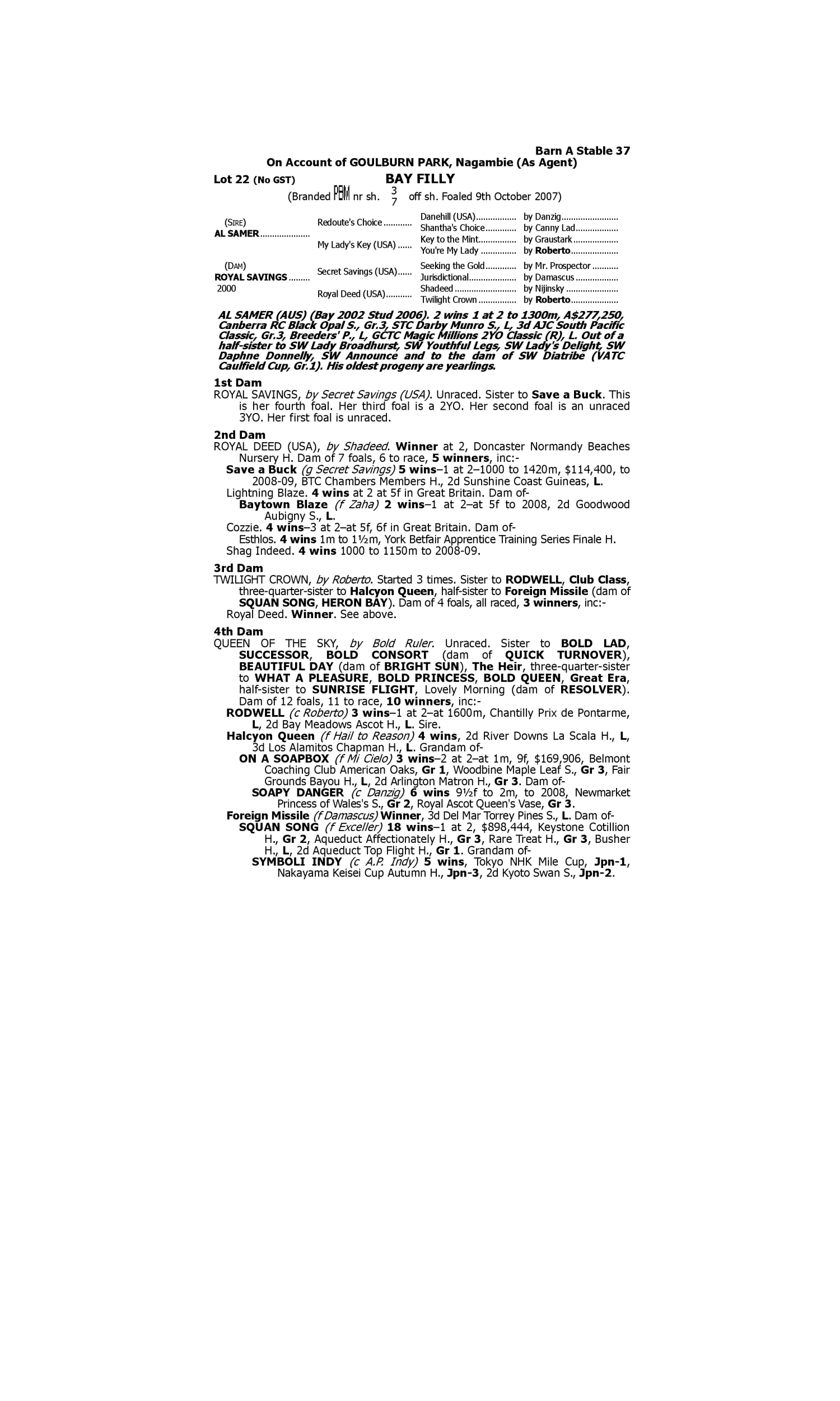 MISS BADOURA (2000.f. by Kingston Rule-Lady Hedwig, by Amyntor-Fatima).
