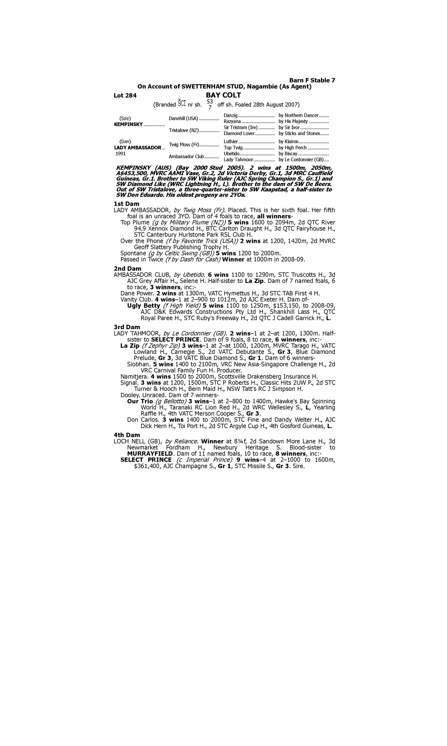 Lot 283 has pedigree updates since the release of the catalogue.