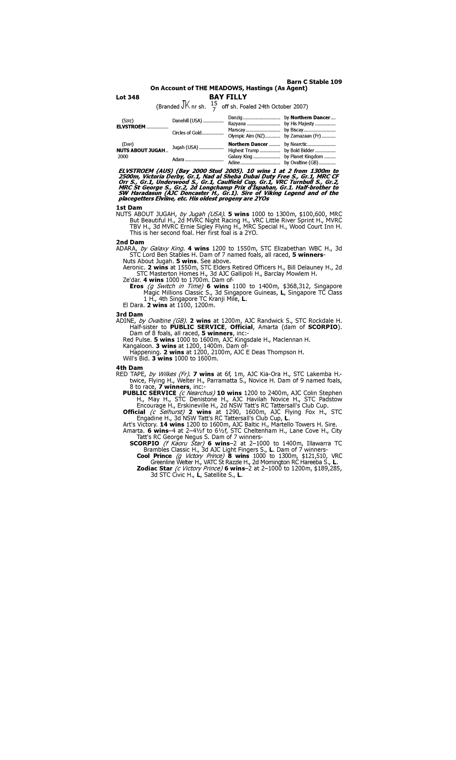 Lot 347 has pedigree updates since the release of the catalogue.