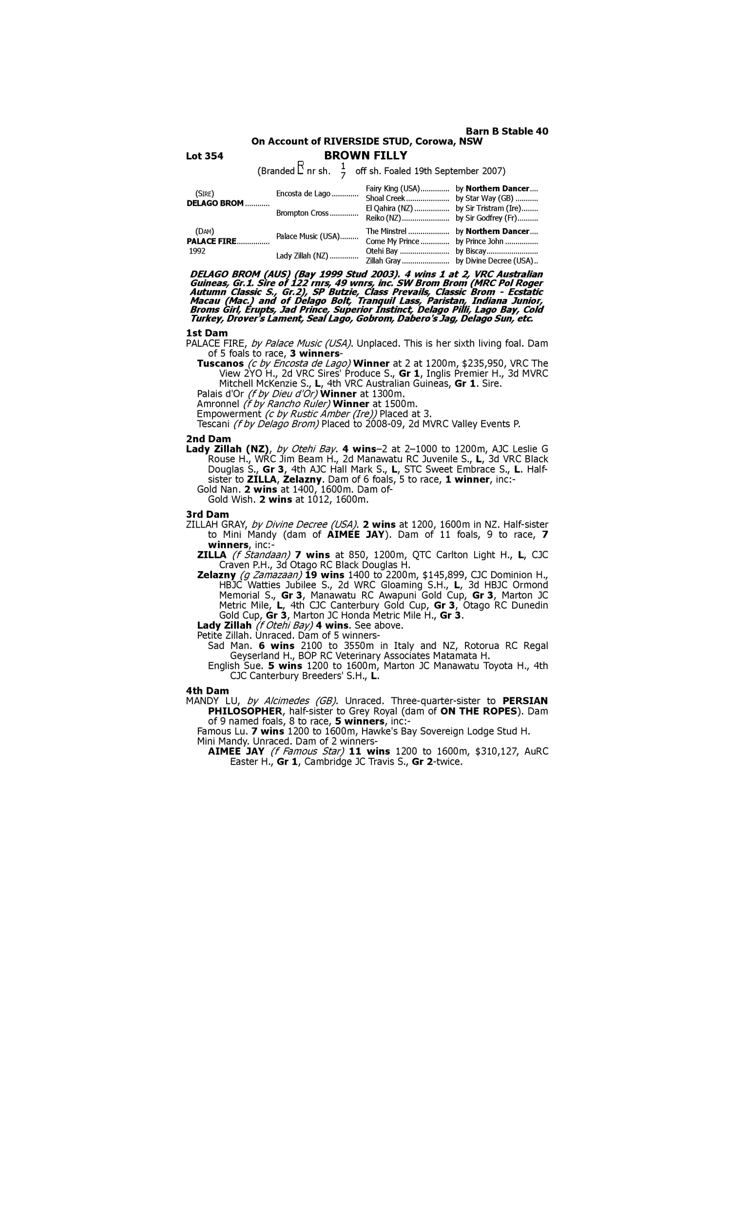 Lot 353 has pedigree updates since the release of the catalogue.