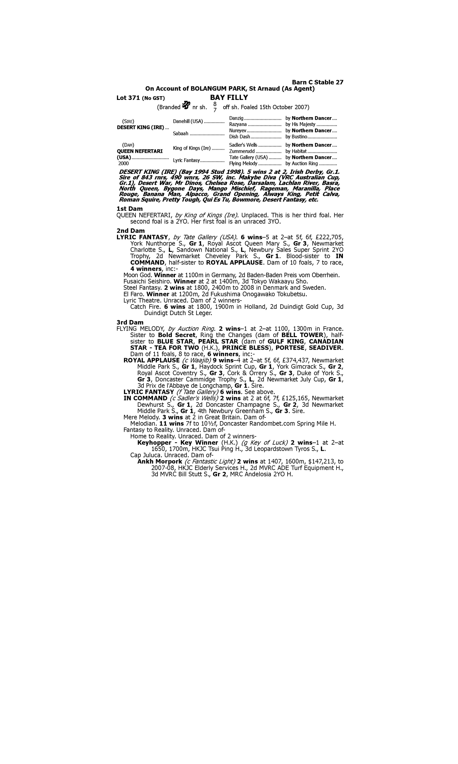 Lot 370 has pedigree updates since the release of the catalogue.