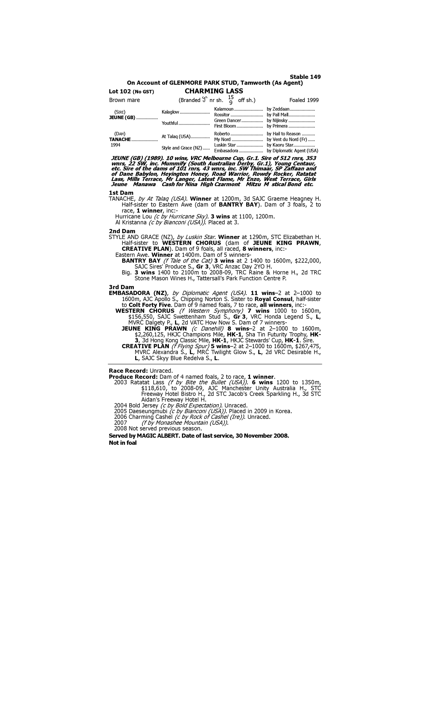Pedigree for Lot 101 Brief Truce (USA) - Light of Century