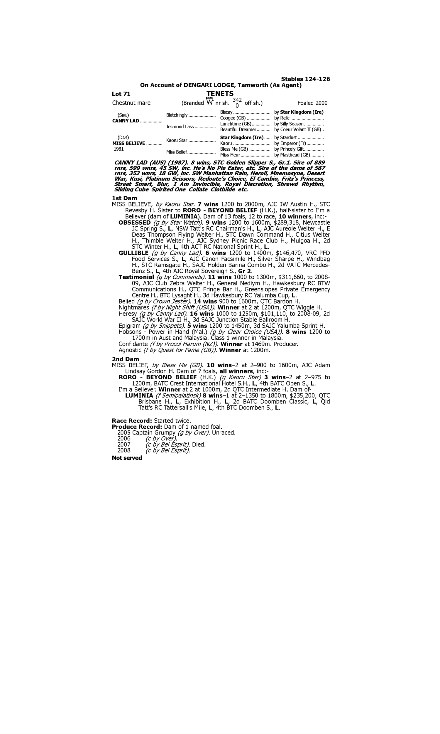 Auenwiese (2004.f. by Lando-Anatina, by Big Shuffle-Abberton). 1st Ghlin Prix Ministere de l'Agriculture 1st Ghlin Prix Chene Paddy O'Reilly (2005.c. by O'Reilly-Star of Amarissa, by Assert-Amarissa). 1st VRC Count Chivas H. Ajhar (2004.c. by Diesis-Min Alhawa, by Riverman-Saffaanh). 1st Newmarket Burghley Horse Trials S.