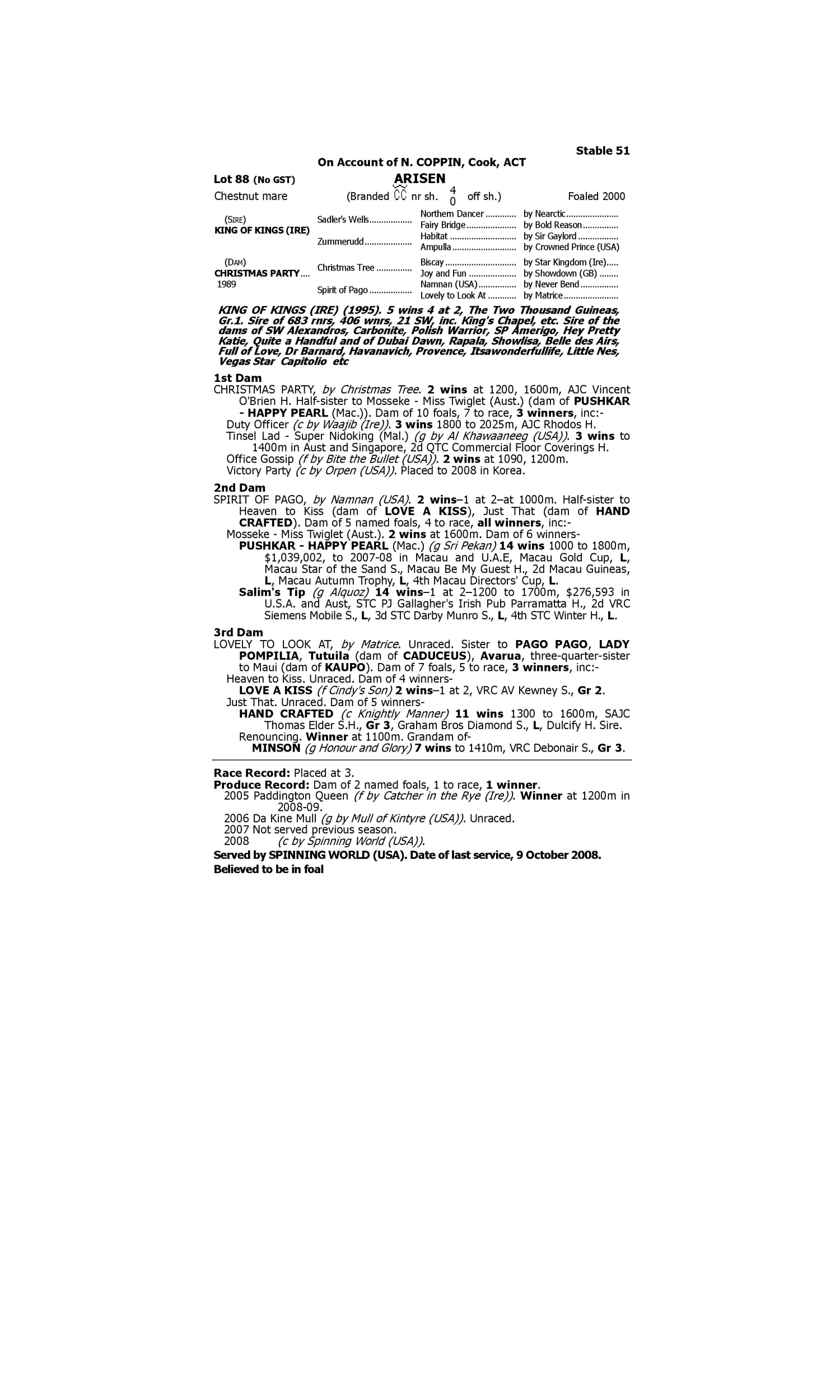 Presley (2005.c. by General Nediym-Alpine River, by Ahonoora-High River).