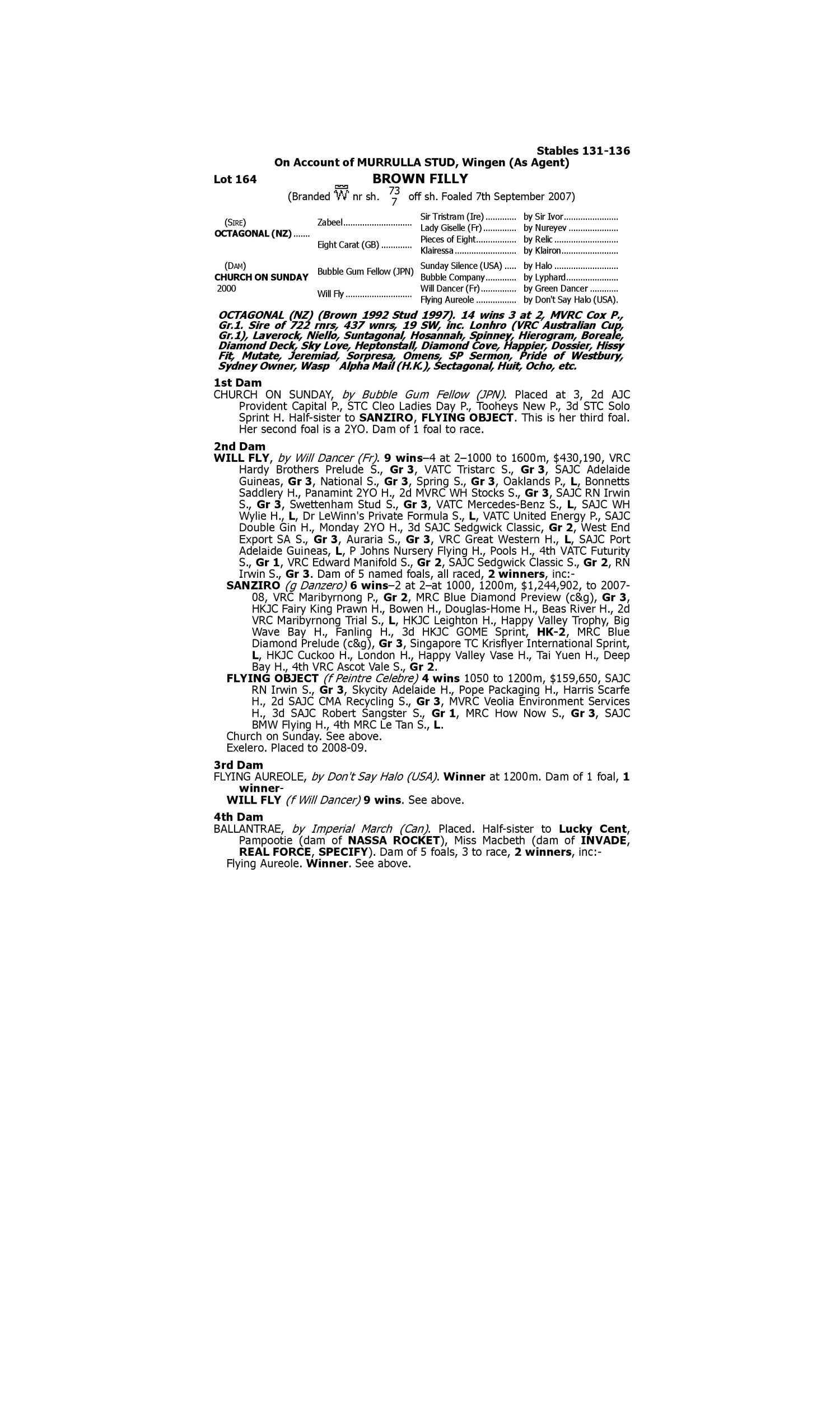 Bahama Chica (2004.f. by Fantastic Light-Choral Chimes, by Sunday Silence-Polent). 2nd ARC NB Holland Medal 3rd BOP RC Natural Green Health Clinic H. Too Much Trouble (2006.c. by Barathea-Tentpole, by Rainbow Quest-Polent). 1st Catterick Richmond S. 3YO