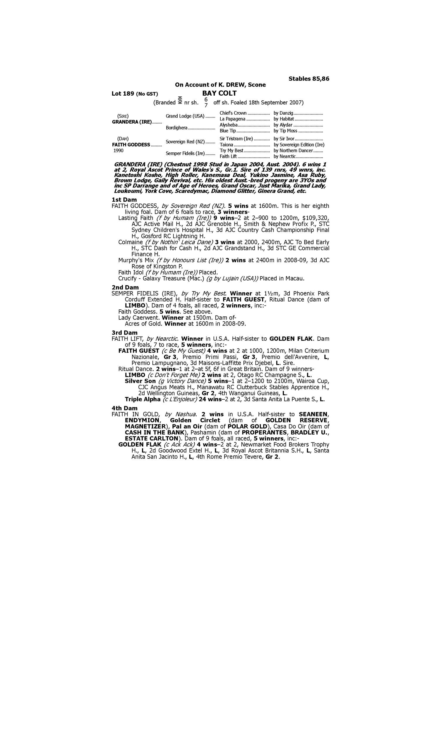 MEINER SCHERZI (2003.c. by Grass Wonder-Aladeya, by Machiavellian-Fair Shirley). 4th Niigata Tanigawadake S. L T Up Gold (2006.c. by Kurofune-Aladeya, by Machiavellian-Fair Shirley). 2nd Nakayama New Zealand Trophy Gr.2 Ten Downing Street (2003.g. by Mujadil-Karen Blixen, by Kris-Dagny Juel). 1st Sunray Claiming