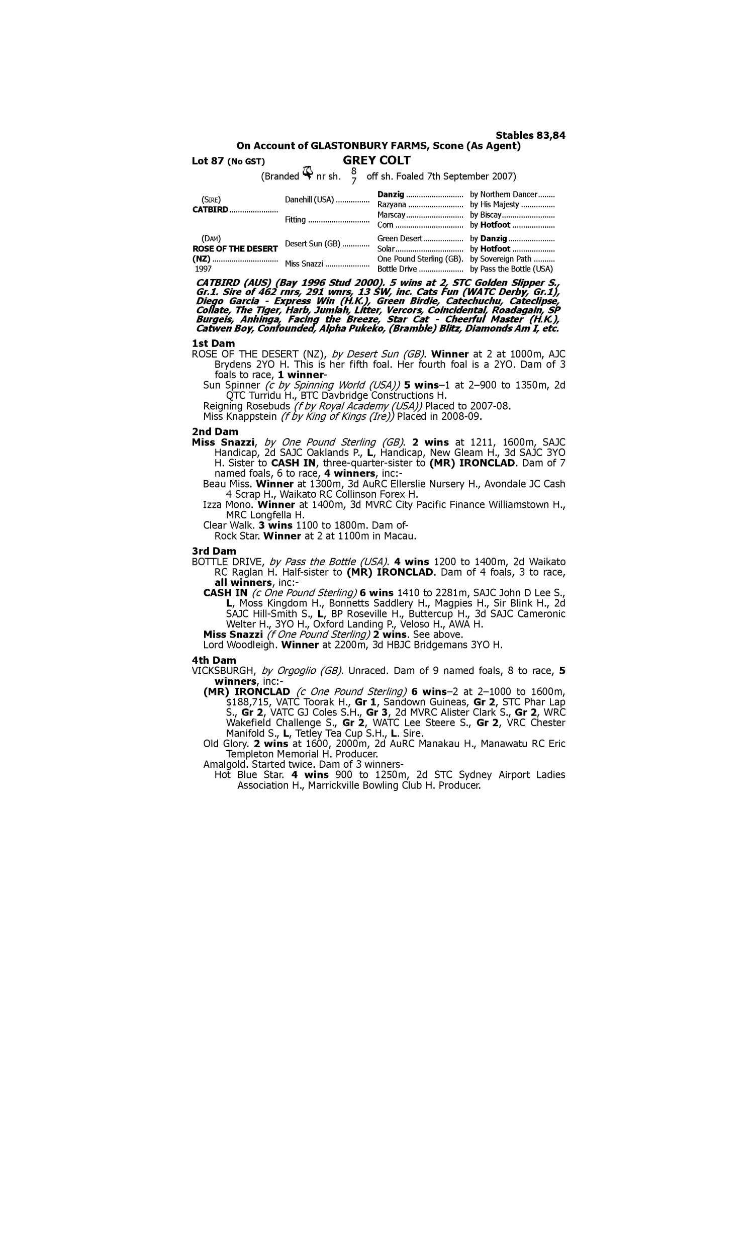 Lot 86 has pedigree updates since the release of the catalogue.