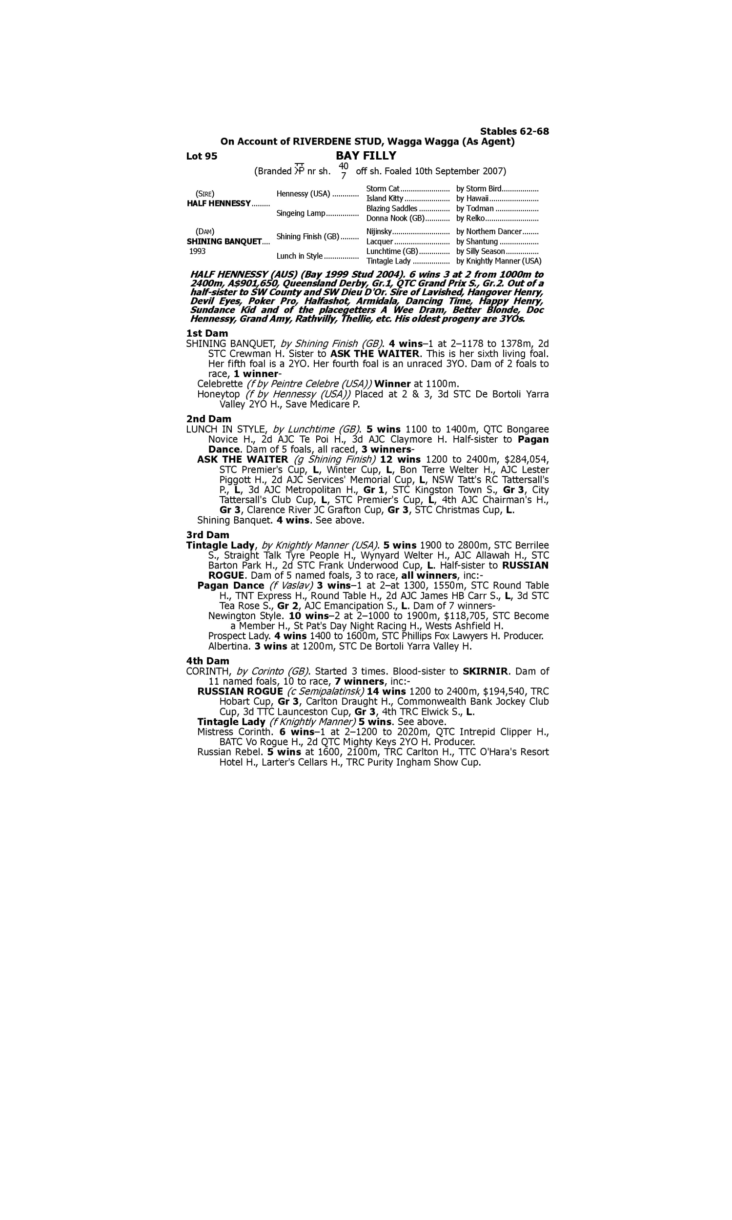 Lot 94 has pedigree updates since the release of the catalogue.
