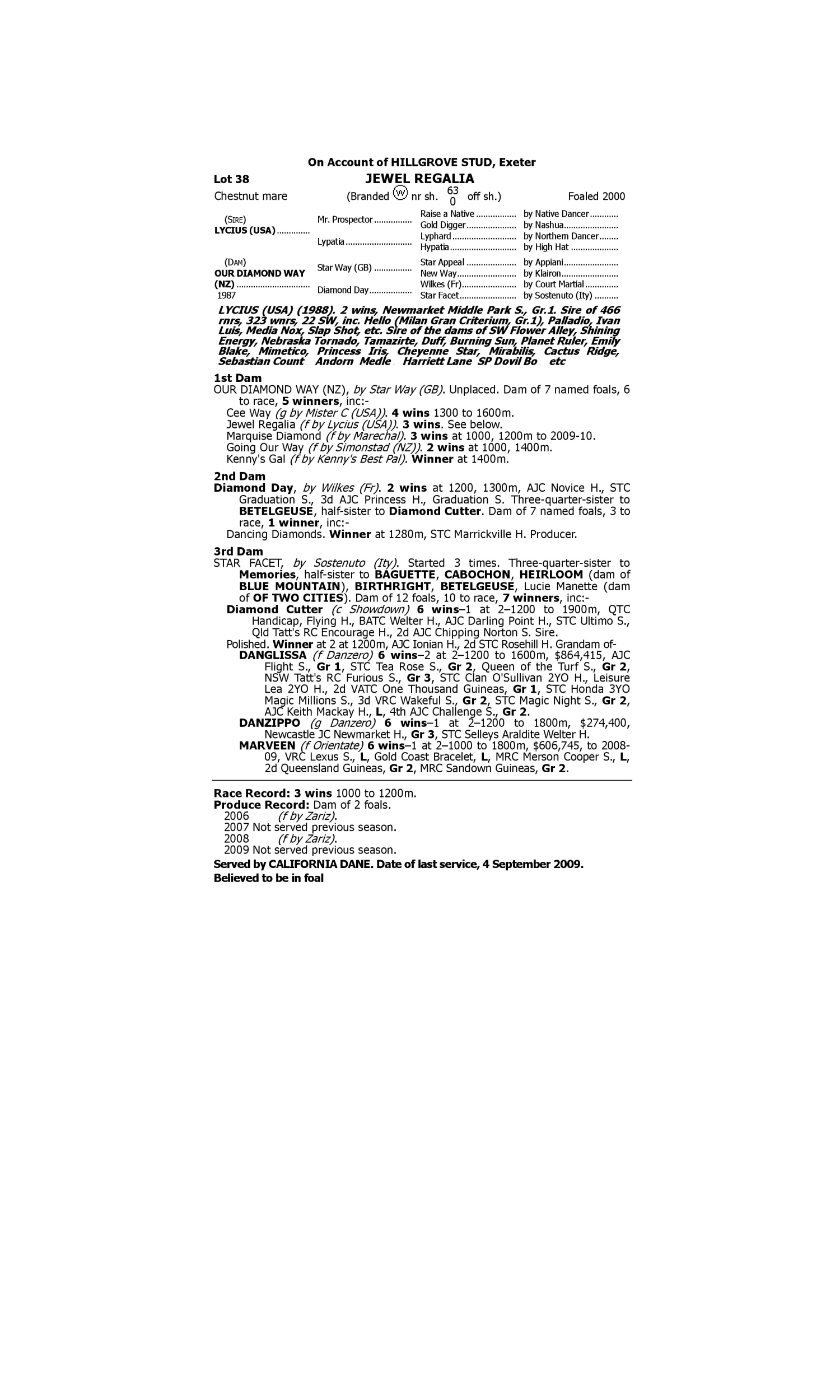Vonusti (2004.g. by Ustinov-Reasonably, by Sound Reason-Marlass). 2nd CJC Pegasus S. L Always Certain (2006.g. by Not a Single Doubt-Akarana, by Akaaber-Lady of Destiny). 2nd Singapore TC Steward's Cup L Hawkeye Mort (2005.g. by Fighting Falcon-Nordanseuse, by Hideyoshi-Mint Kisses). 1st WATC (Ascot) Budget 4WD Rentals H.