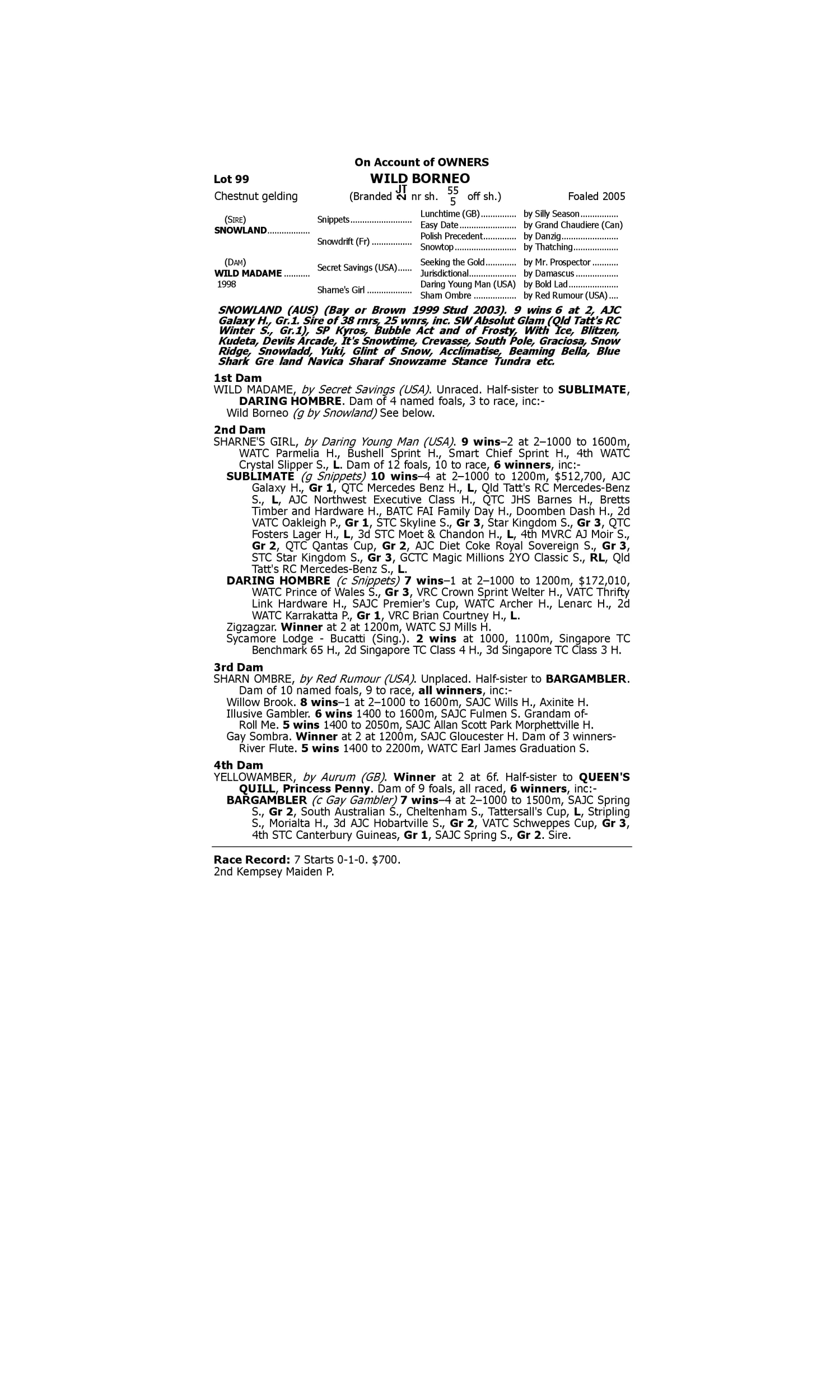 Pedigree for Lot 98 Peintre Celebre (USA) - Zabori (NZ)
